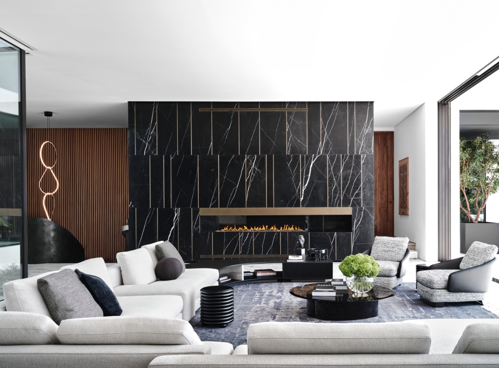 In de villa zijn een aantal hele unieke dingen waar ontzettend veel moeite is gestopt voor iets wat je niet persé nodig hebt in een woning. Er is een zes meter hoge stenen waterval die vanuit een buitengracht naar beneden stroomt door de eetkamer van het huis, voordat hij samenvloeit in een half-ondergrondse binnenplaats. Op deze binnenplaats wikkelt het water zich rond een 4,5 meter hoge olijfboom geïmporteerd uit Italië, ondanks al die moeite ziet het er weelderig uit.