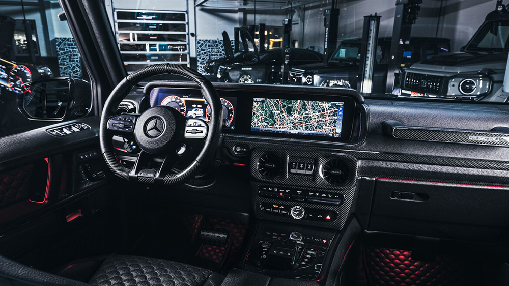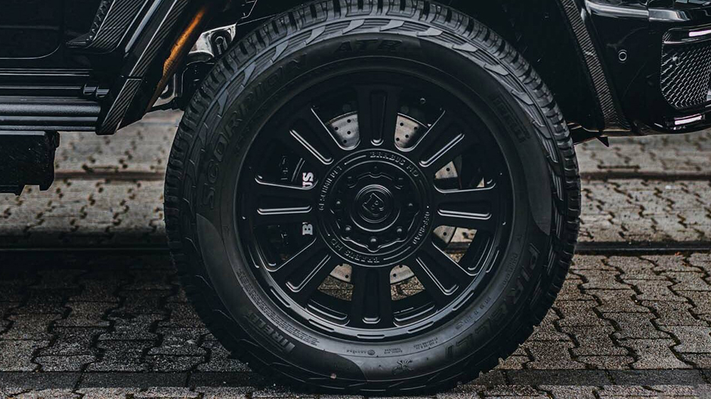 Verder is de brute vierwieler in de kleur Obsidian Blac een stuk verlengd en uitgerust met een heavy-duty kabellier: een imperiaal, opvallend en hoogwaardig uitlaatsysteem. Ook zul je merken dat de Brabus 50 centimeter hoger op z’n sloffen staat en een geheel nieuwe ophanging met voor- en achterportalassen heeft ontvangen. Hierdoor kan het duistere bakbeest elk terrein aan. De 22-inch gesmede wielen gewikkeld in all-terrain banden zullen ook goed van pas komen in off-road situaties.
