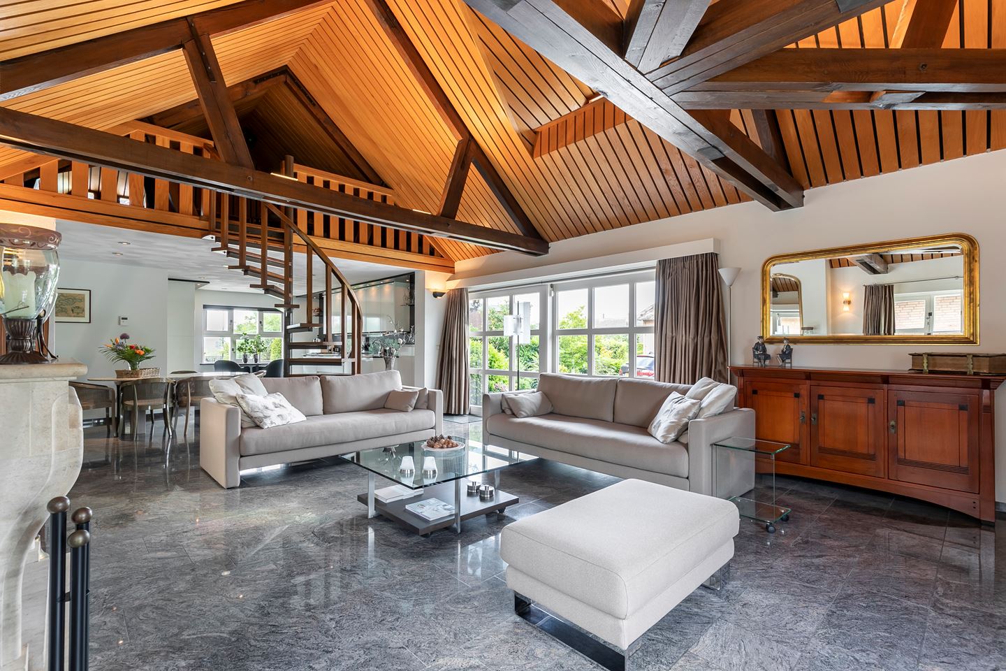 “De ambiance is dan weer luxe, dan weer gezellig en niet te vergeten altijd groots”, opent de makelaar. Het perceel van in totaal 4.988 m² is te betreden middels de afsluitbare oprit. Alle vertrekken op de begane grond tot aan de vrijstaande dubbele, rietgedekte, garage zijn ruim en in totaal zijn er vijf slaapkamers en twee badkamers.