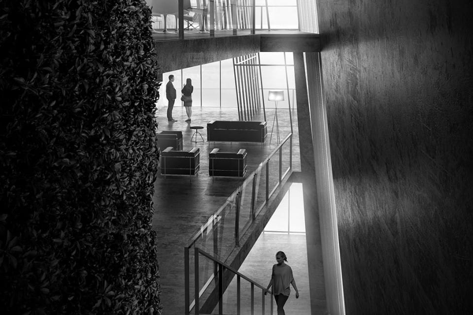 Een mooi uitzicht wordt zo op een geheel nieuw niveau vormgeven, de fictieve retraite wordt opgebouwd uit wat lijkt op beton, metaal en glas. Ramen van de vloer tot het plafond en open balkon zorgen voor een optimale lichtinval (die natuurlijk veel nodig is in de wintermaanden van IJsland), en bieden een prachtig uitzicht op de Noord-Atlantische Oceaan en de Noordelijke IJszee.