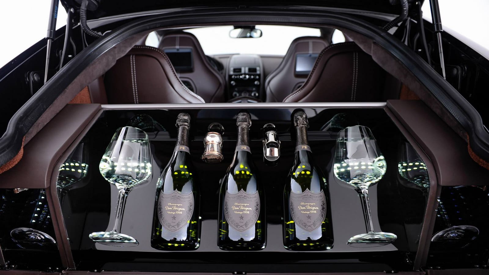 Het is het resultaat voorgekomen uit de samenwerking tussen de Aston Martin in Milaan en Dom Pérignon. Deze fantastische Aston Martin Rapide S Dom Pérignon Deuxieme Plénitude Special Kit bestaat uit een met de hand gebouwde en verwijderbare “kelder” met drie flessen Dom Pérignon Champagne uit 1998, samen met twee kristallen glazen en een zilveren flessenopener.