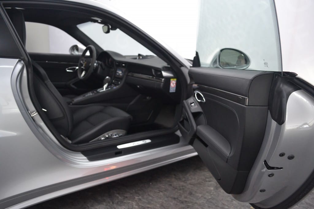 Wat een plaatje hè deze prachtige Porsche 991 Turbo S Coupé MKII.? MKII dus het nieuwste model na de facelift. Nou hoor je vaak dat een Porsche zwart moet zijn zoals een Ferrari rood moet zijn maar deze speciale kleur, GT Zilver, staat de auto wel heel goed. Zeker in combinatie met het zwarte leder. De motor, die achterin ligt uiteraard, levert maar lieft 581 PK.