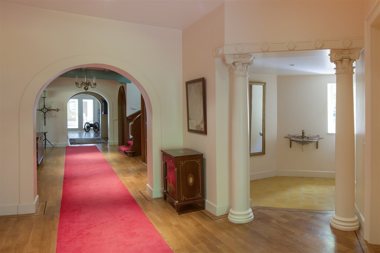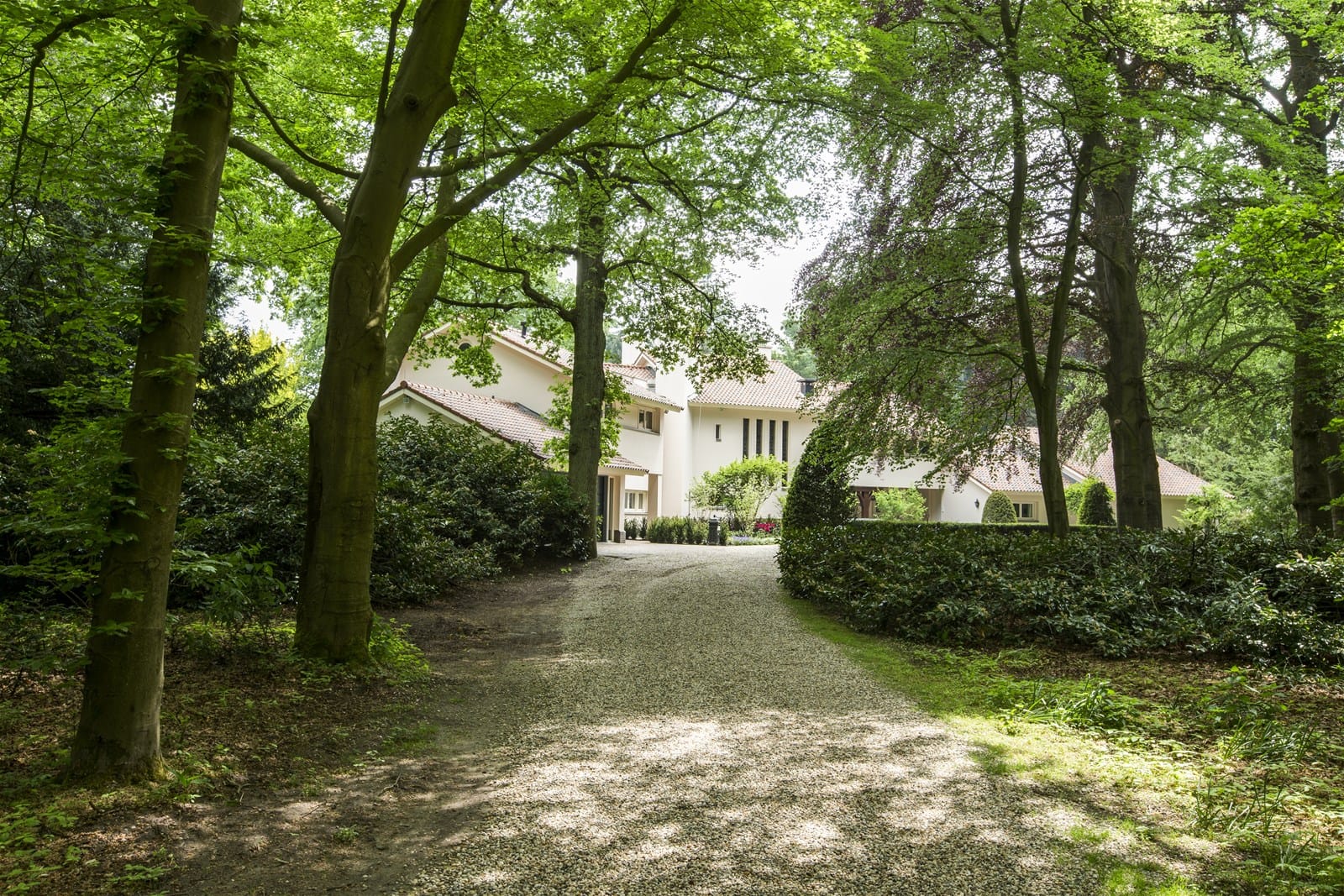 De ingang van het landgoed ligt bijna onopvallend en het roomwitte landhuis is door bos aan het oog onttrokken. De architectuur refereert op subtiele wijze aan het landhuis dat hier eerder aan het begin van de vorige eeuw werd gebouwd.