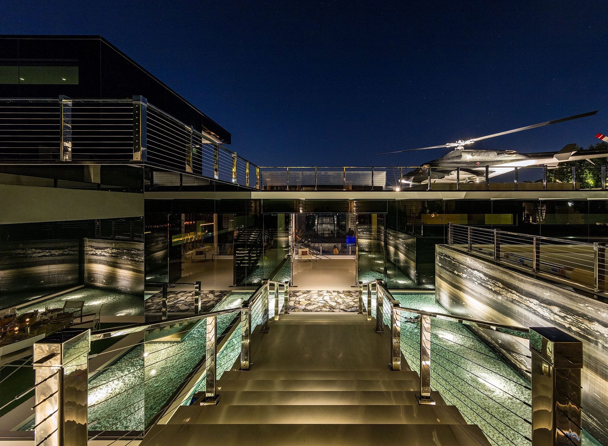 Kijk naar de foto’s en video’s om het te geloven. Niet een garage voor wat auto’s maar een hele collectie met wel 12 auto’s en 10 motorfietsen, waaronder een Rolls-Royce Dawn, Ferrari 488, Pagani Huayra, 1936 Mercedes-Benz 540K, Spyker C8, Ariel Atom 3, Bentley Continental GT cabriolet, Bugatti Veyron en nog veel meer. Verder o.a. een eigen bowlingbaan, een helikopter, terrassen met de mooiste meubelen en de mooiste uitzichten, een “speelkamer” voor de kinderen, een eigen snoepwinkel, een megabioscoop, zwembaden rondom, veel prachtige kunst. Op eenzaam hoog niveau (en best stijlvol vinden wij) ingericht. En alles is inclusief voor deze prijs van slechts 250 miljoen dollar. “What you see is what you get” dus.