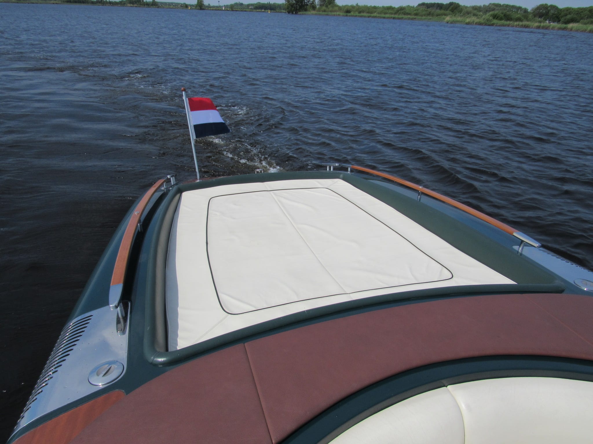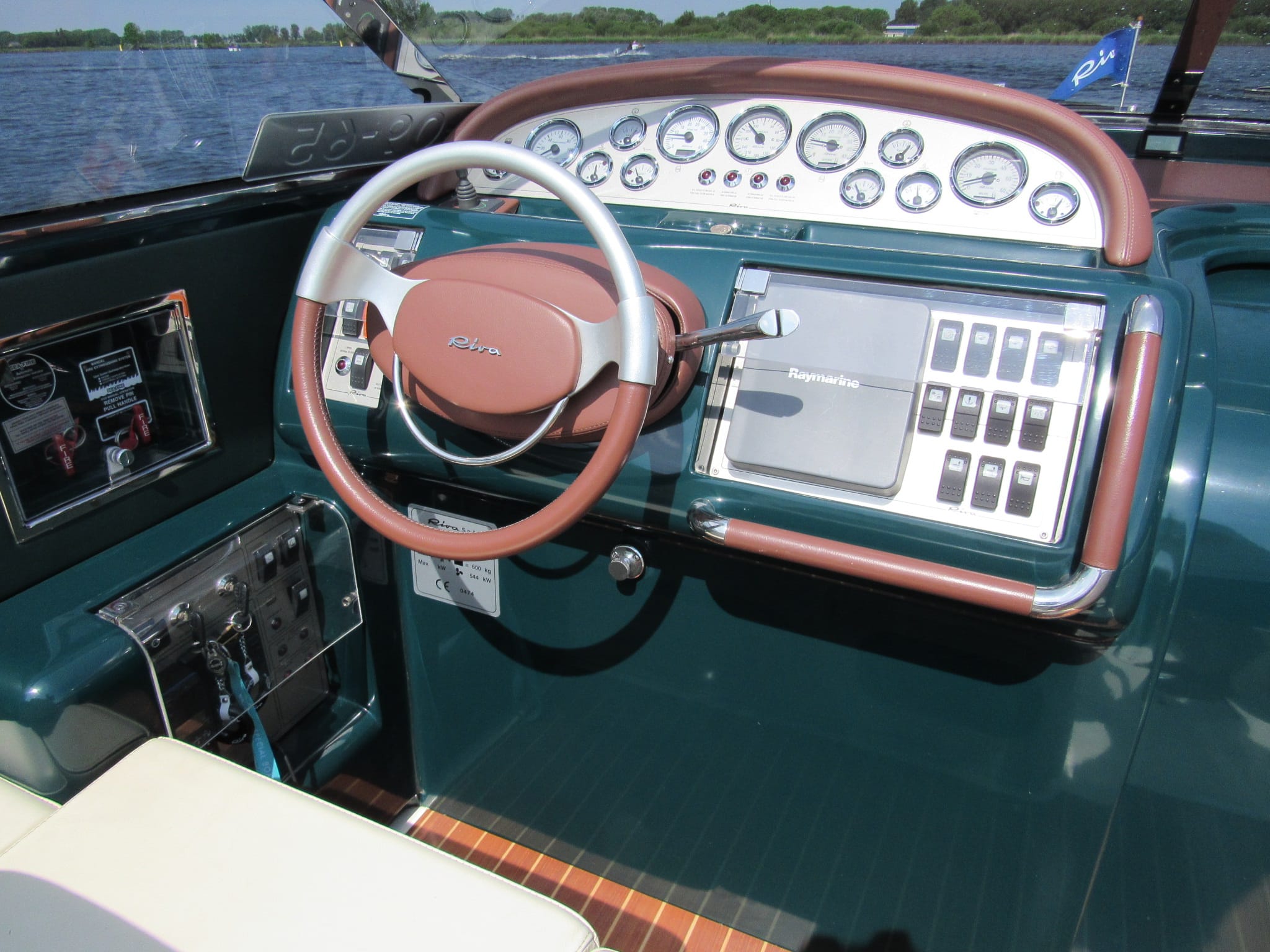 Dit exemplaar in Britisch racing green werd in 2004 nieuw afgeleverd in Zwitserland. En heeft nog nooit op zout water gevaren! De passie voor esthetiek en performance druipt nog immer letterlijk van deze klassieke volbloed af. Verleidelijk is niet het juiste woord. Betoverend past meer bij het waanzinnige karakter van deze Riva Aquariva. Het afgelopen jaar is al het houtwerk opnieuw in de lak gezet en hebben de 2 Yanmar diesel motoren met 315PK een onderhouds beurt gehad, ze is direct vaarklaar voor de volgende levensgenieter. Alleen een bezichtiging kan u nog overtuigen,.