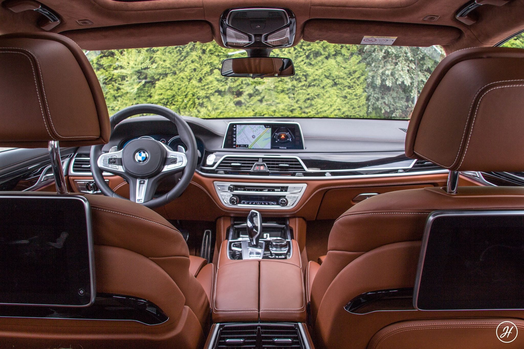 Het interieur van de huidige 7 Serie is een bekende werkplek. Een plek die ervoor zorgt dat je niets te wensen overhoudt, zowel voor- als achterin. Beginnen we voor (de Zeven juist bedoeld om ook zelf te rijden) dan tref je twee fantastische zetels aan, bekleed met exclusief bruin leder en dito afwerking. Je kijkt tegen een eveneens fraai afgewerkt dashboard aan, voorzien van alle gemakken. BMW’s iDrive blijft de standaard in autoland, het systeem doet precies en bloedsnel wat jij wilt. De audio wordt verzorgd door Bowers & Wilkins en behoort daarmee ook tot de absolute top. De gemiddelde concertzaal is jaloers op deze geluidskwaliteit.