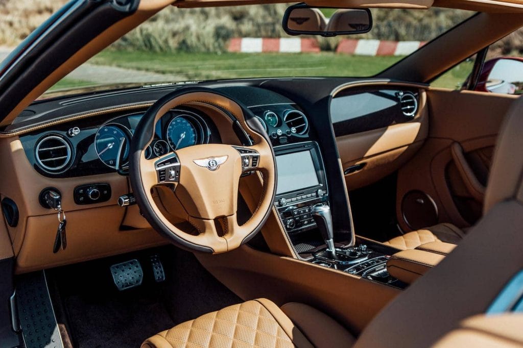 Aan de buitenkant is de iconische grille gehuld in chroom om zijn verwantschap met de andere W12 Bentley modellen te onderstrepen. Daarnaast is in het interieur van de Continental GT Convertible alles onder de loep genomen, zodat niets meer buiten handbereik is. Deze Bentley kan zowel opwinden als kalmeren. Maar heel eerlijk: bij mij vooral opwinden. Dat komt ook door de fantastische kleurencombinatie: rood metallic met een wat donkerder beige lederen interieur, aangevuld met een zwarte cabriokap. Ik denk overigens dat een cabriokap in dezelfde kleur als het leer de auto ook goed zou staan.