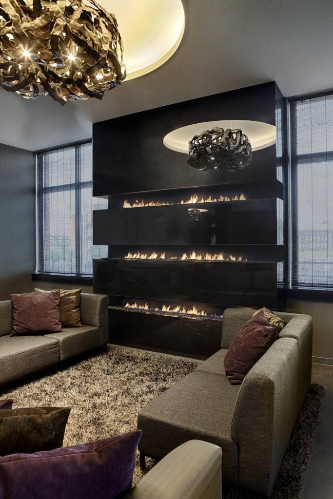 Toch zijn het juist de extremere ontwerpen die Niels Boley een extra gevoel van trots bezorgen. “Eigenlijk kan het ons niet gek genoeg, dan zijn we op ons best”, biecht hij op. Zo staat er in het Miele Experience Center een Boley doorkijkhaard van negen meter breed. “Ook de haard die we voor het Van der Valk Hotel in Dordrecht hebben ontworpen is echt uniek. Door drie openhaarden van elk tweeëneenhalve meter breed boven elkaar te plaatsen, hebben we een ware vuurtoren gecreëerd.”