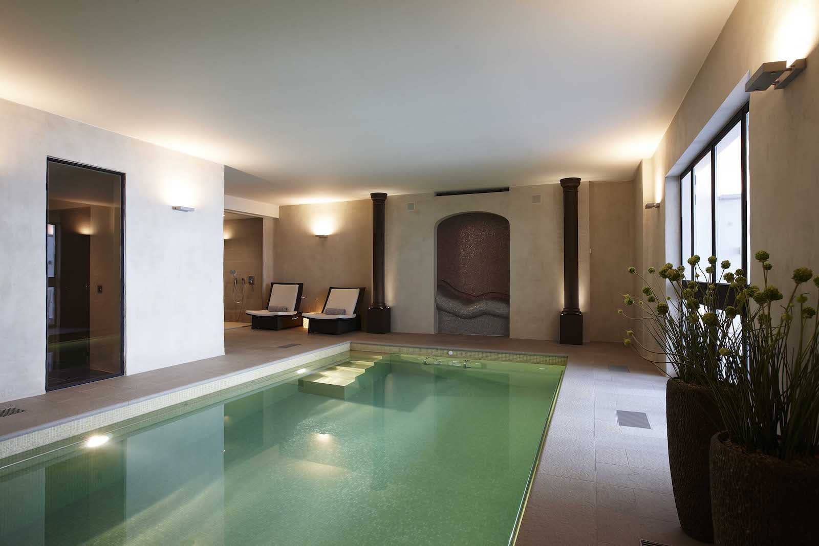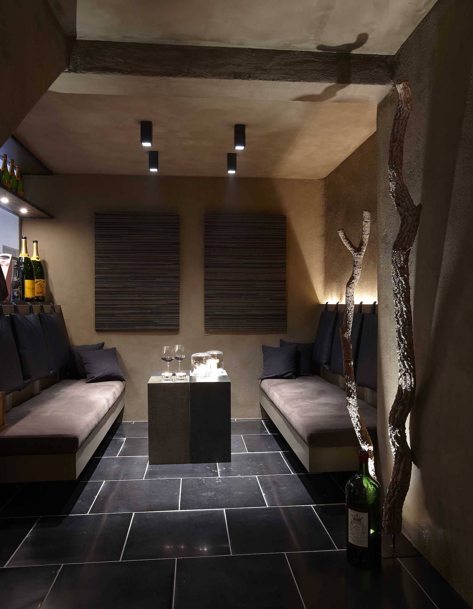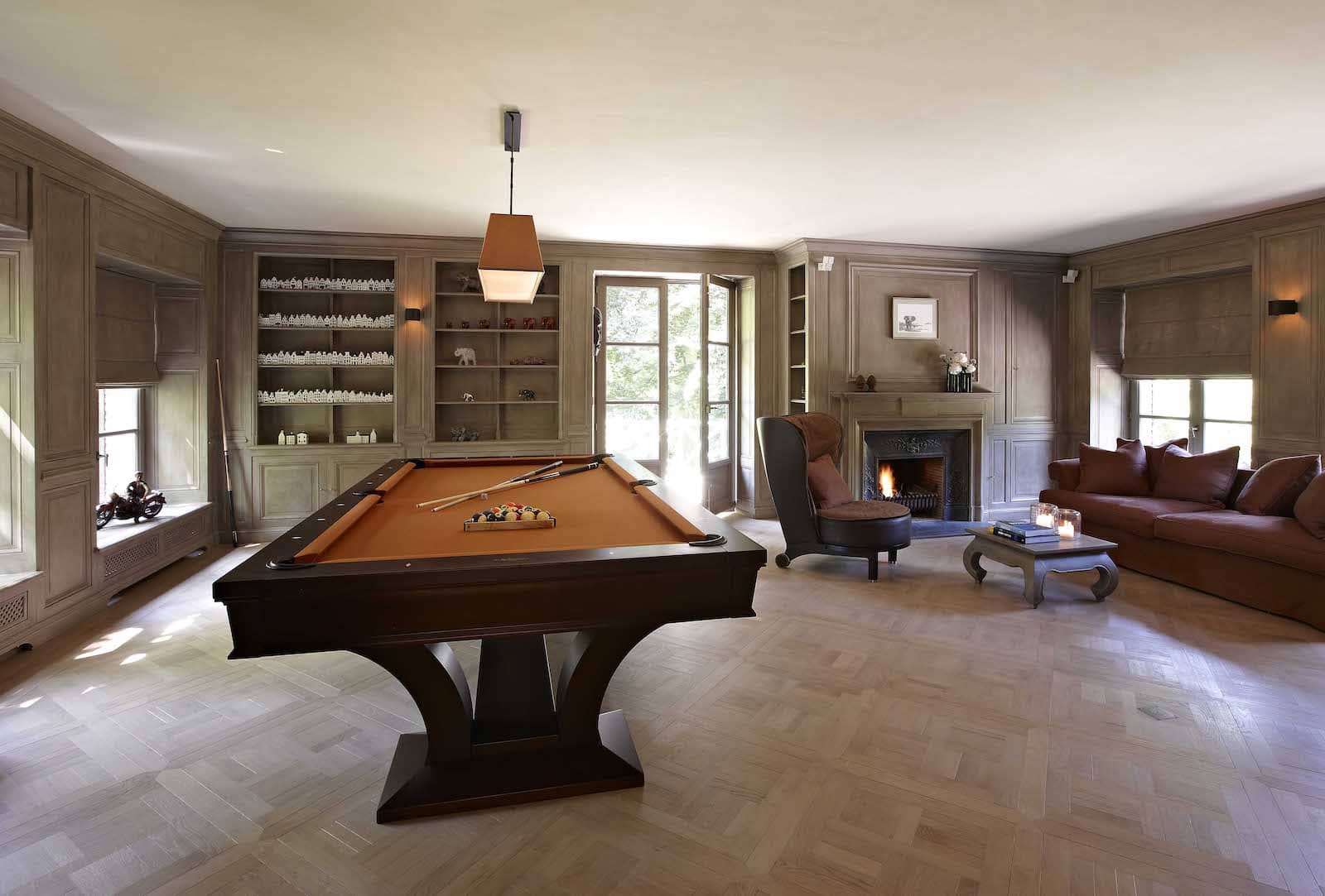 In de ontspanningskamer overheersen de warme bruine tinten. Maatkasten in puur eiken en een gietijzeren front voor de open haard geven een Angelsaksisch cachet. Al moeten de exclusieve klapstukken nog komen. Die wijnkelder en degustatieruimte, bijvoorbeeld. Geklimatiseerd, met veel gevoel uitgewerkt, helemaal op maat. Of die home spa: verrijkt met oriëntaalse toetsen, compleet uitgerust met zwembad, hammam, sauna… En dan: de fitnessruimte: steekt eigenlijk onder de grond, maar krijgt gul daglicht dankzij de glazen koepel. Geniet van een ideale temperatuur, dankzij de bescherming van Moeder Aarde.