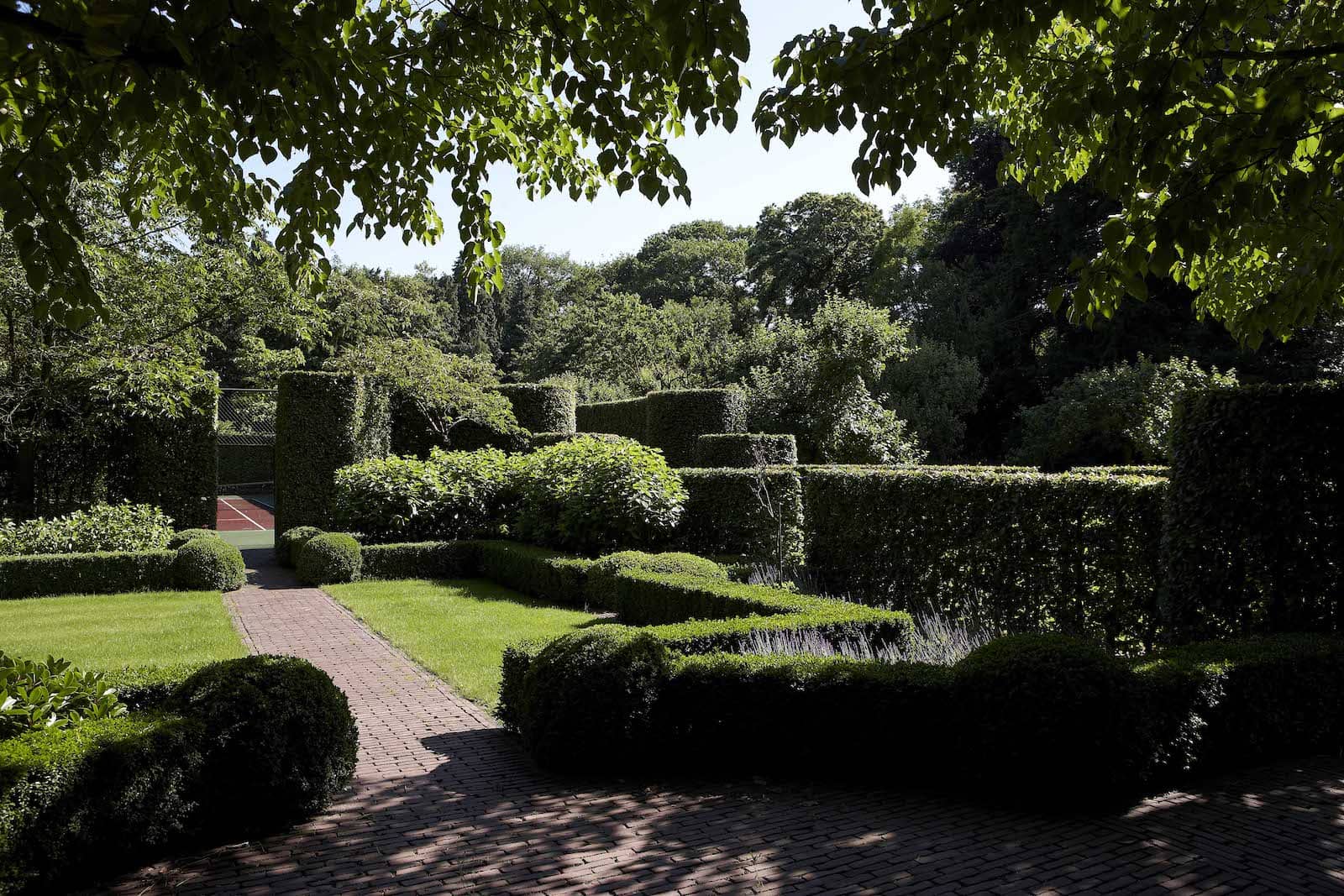 De eigenaar van deze magnifieke woning viel niet alleen voor het authentieke, klassieke uitzicht van deze manoir. Hij ontkwam ook niet aan de betovering van de enorme parktuin. Van op de zonneterrassen geniet je inderdaad van een overweldigend uitzicht. Dat begint dichtbij met de strak getrimde hagen – een elegante verwijzing naar de geometrie van de gevel – en de aangelegde bloemperken. Daarna dwaalt de blik over glooiende grasvelden afgezoomd met eerbiedwaardige bomen. Dan nemen het bos, de waterloop en de ongetemde natuur het over. Hier is het in elk seizoen mooi. Door de nieuwe indeling van het interieur, is het contact met de buitenomgeving bovendien inniger geworden. Een belevenis op zich.