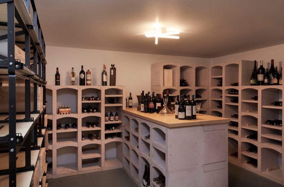 Volledig ingerichte wijnkelder voorzien van lavastenen flessenschappen met klimaatbeheersing. De kelder is daarnaast voorzien van een luchtverversingssysteem om de wijnen ook op goede temperatuur te houden.