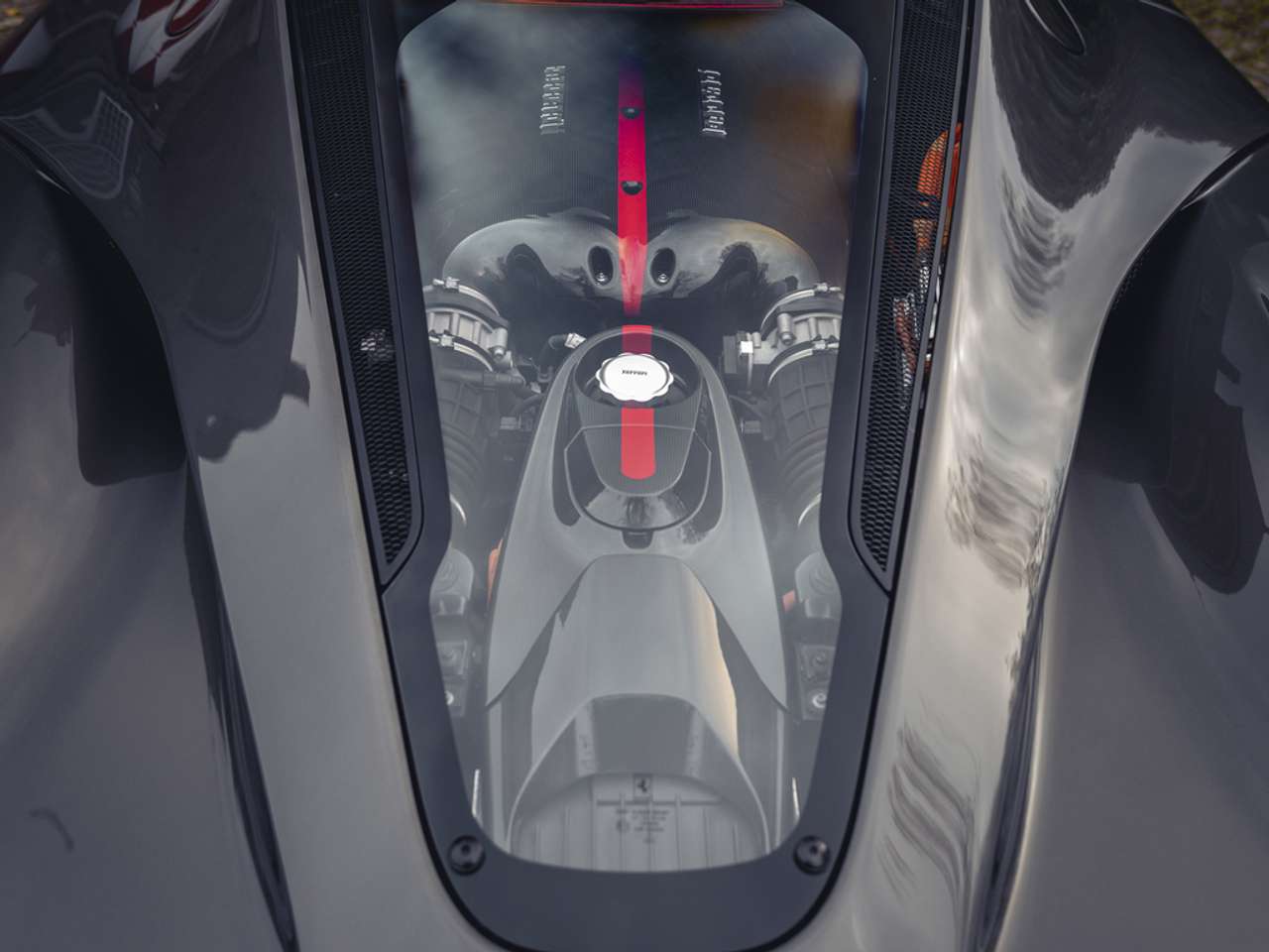 Deze 12 cilinder grote motor heeft maar liefst een vermogen van 963 pk, komend uit een dikke V12. Dit alles brengt deze wagen in 3 seconden van 0-100. De wagen heeft energielabel G, maar dit is absoluut geen rede om deze wagen niet te kopen. Dit brute geweld zuipt benzine alsof het water is maar dan rijd je wel de dikste Ferrari die er bestaat.