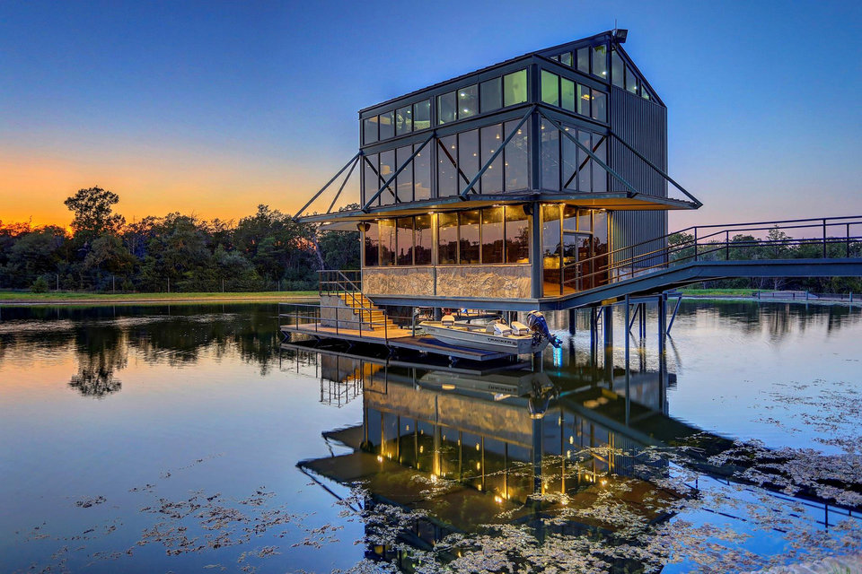 Deze prachtige watervilla laat zien dat een woning helemaal weg kan vallen in de natuur. Deze ultra moderne villa staat op palen boven het water, echt een ultieme uitstraling. Aan de buitenkant is enorm veel glas gebruikt. Hierdoor is de woning echt overgoten met licht. Over een stijger loop je naar je eigen woning, deze woning is eigenlijk één grote stijger. De stalen look geeft naar onze mening wel een wat agressieve uitstraling met zich mee. Maar dit is absoluut niet lelijk als je het ons vraagt.
