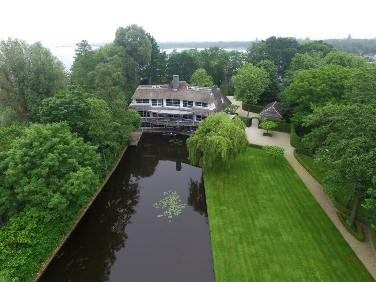 Vanuit deze villa kijk je over de bomen uit over de Loosdrechtse plassen. Hierbij komt ook nog eens 31.000 vierkante meter eigen grond. De tuin is dus groot genoeg voor een gepast feestje.