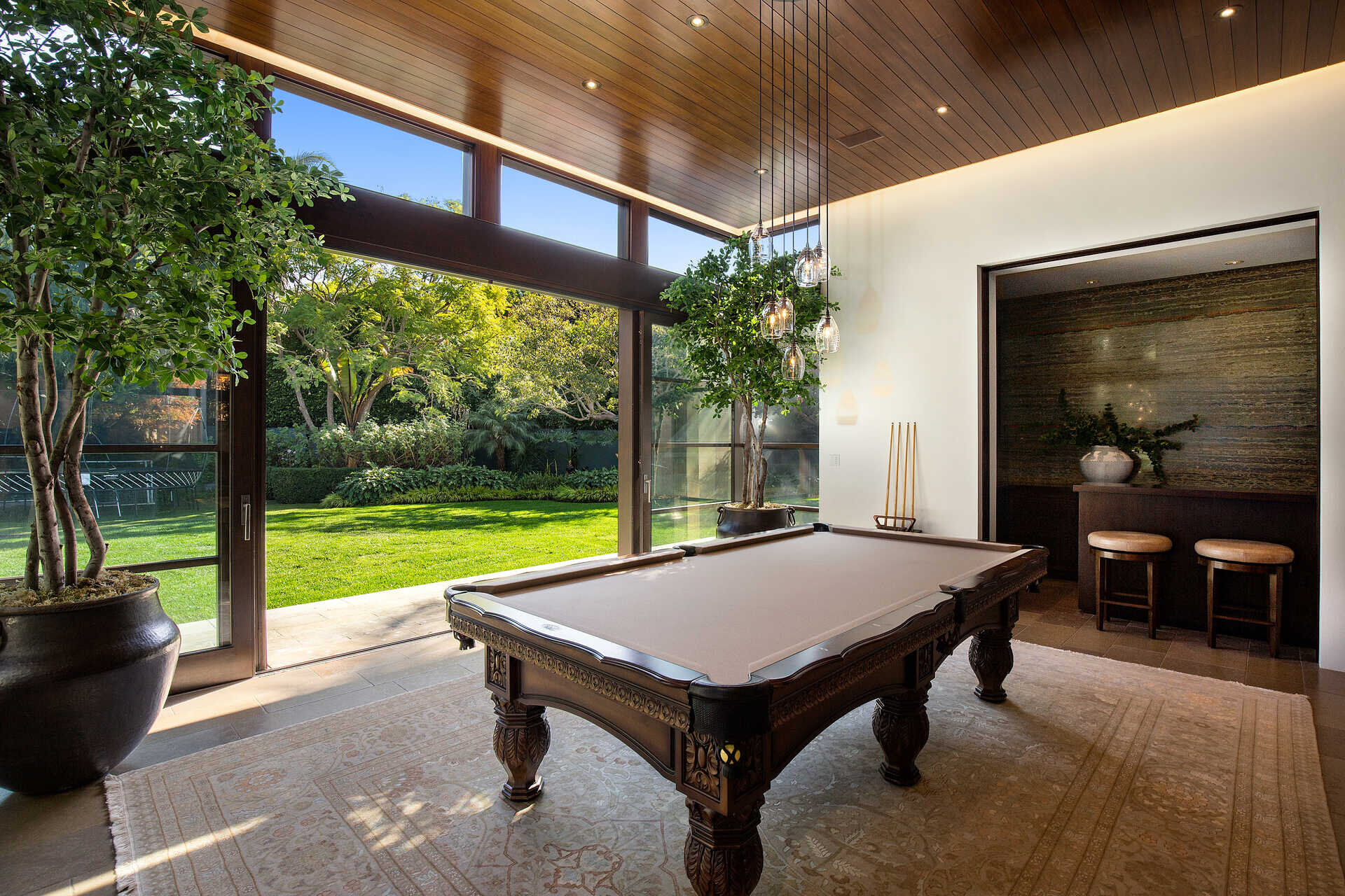De zeven slaapkamers zijn ruim en afgelegen. De rest van het huis beschikt over een fitnessruimte, massagestudio, bar, wijnkamer en theater. En alsof dat nog niet genoeg was, biedt het op Hawaï geïnspireerde zwembadhuis een leuke plek om van het terras bij het zwembad te genieten.
