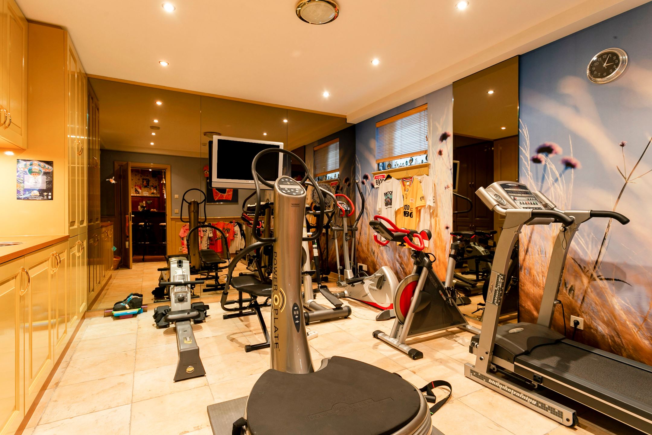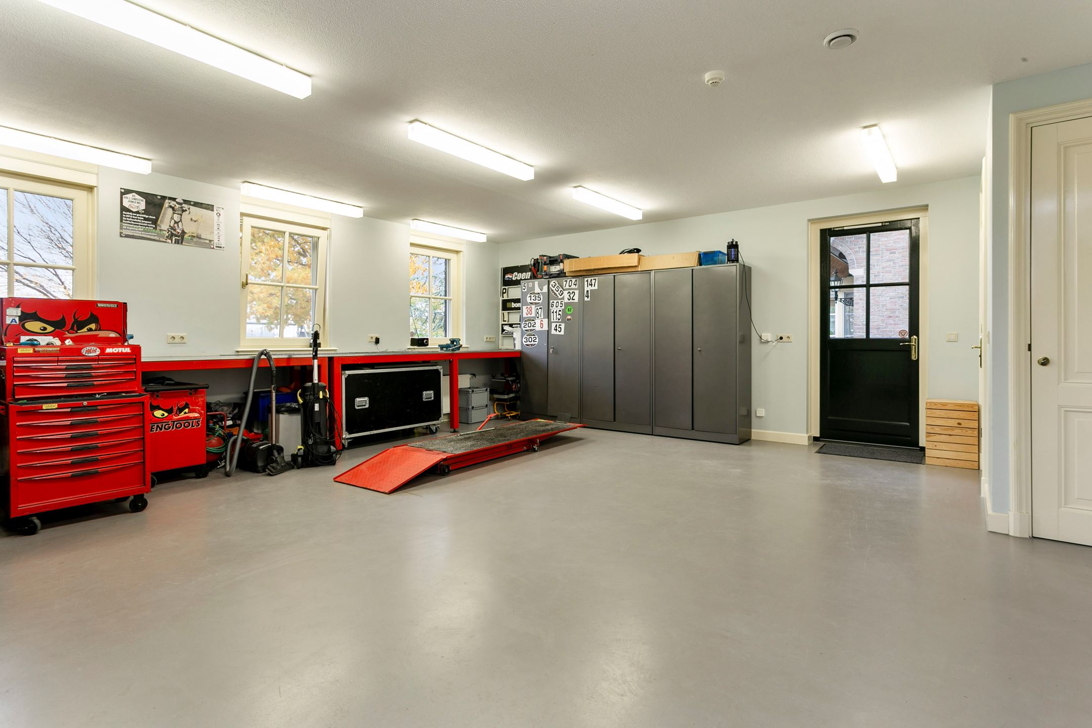 Als laatste zijn er nog een paar bijgebouw van de partij – eveneens met rietdak. De kapschuur bevat een carport die plaats biedt aan drie auto’s en een driedubbele garage met zolder. Dan komen we aan bij de souterrain. Hier is nóg een (dubbele) garage. Verder is er een werkkamer en een royale multifunctionele ruimte met bar en biljart, fitnessruimte, slaapkamer en een wellness ruimte met sauna, douche en ligbad.