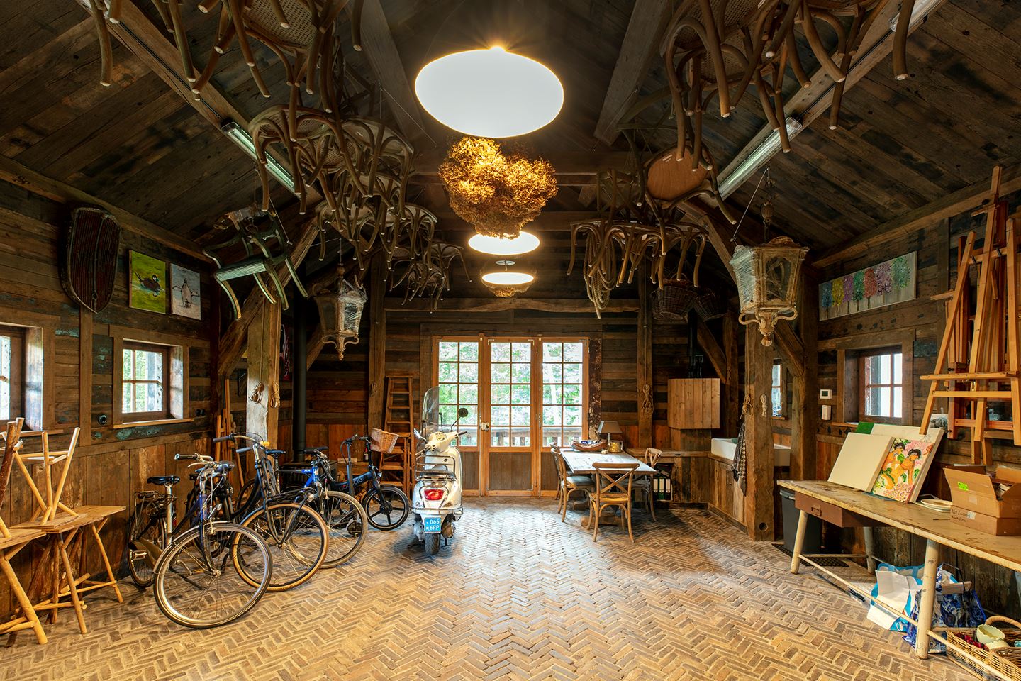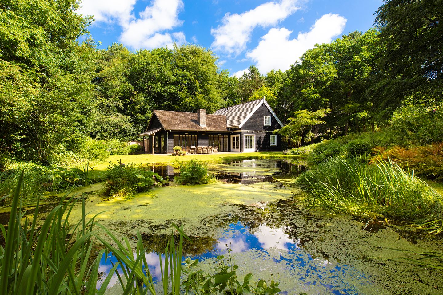 Dit houten kunstwerk ligt in Bentveld, vlakbij Aerdenhout – waar wel meer prachtige residenties zijn gerealiseerd. Door de makelaar in kwestie aangeprezen als “Klein Zwitserland in Kennemerland”. Voor wie, juist in deze tijd, de ideale combinatie zoekt van resideren en werken aan huis is hier aan het juiste adres. Maar je ziet al meteen aan de foto’s dat het verder dan alleen dat gaat.