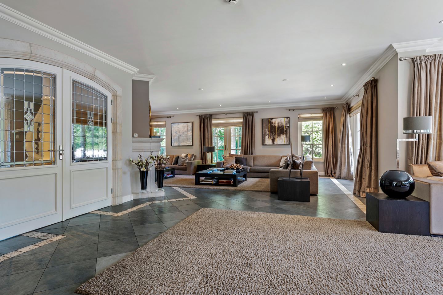 Middels openslaande deuren is er vanuit de hal toegang tot de living. Een zeer royale leefruimte met diverse zithoeken. De fijne lichtinval, sfeervolle afwerking en het magnifieke uitzicht maakt de living compleet. Aansluitend is de ruime woonkeuken met een luxe opstelling. De keuken is voorzien van een kookeiland, granieten en zoals het ‘heurt’ van alle gemakken en inbouwapparatuur voorzien.