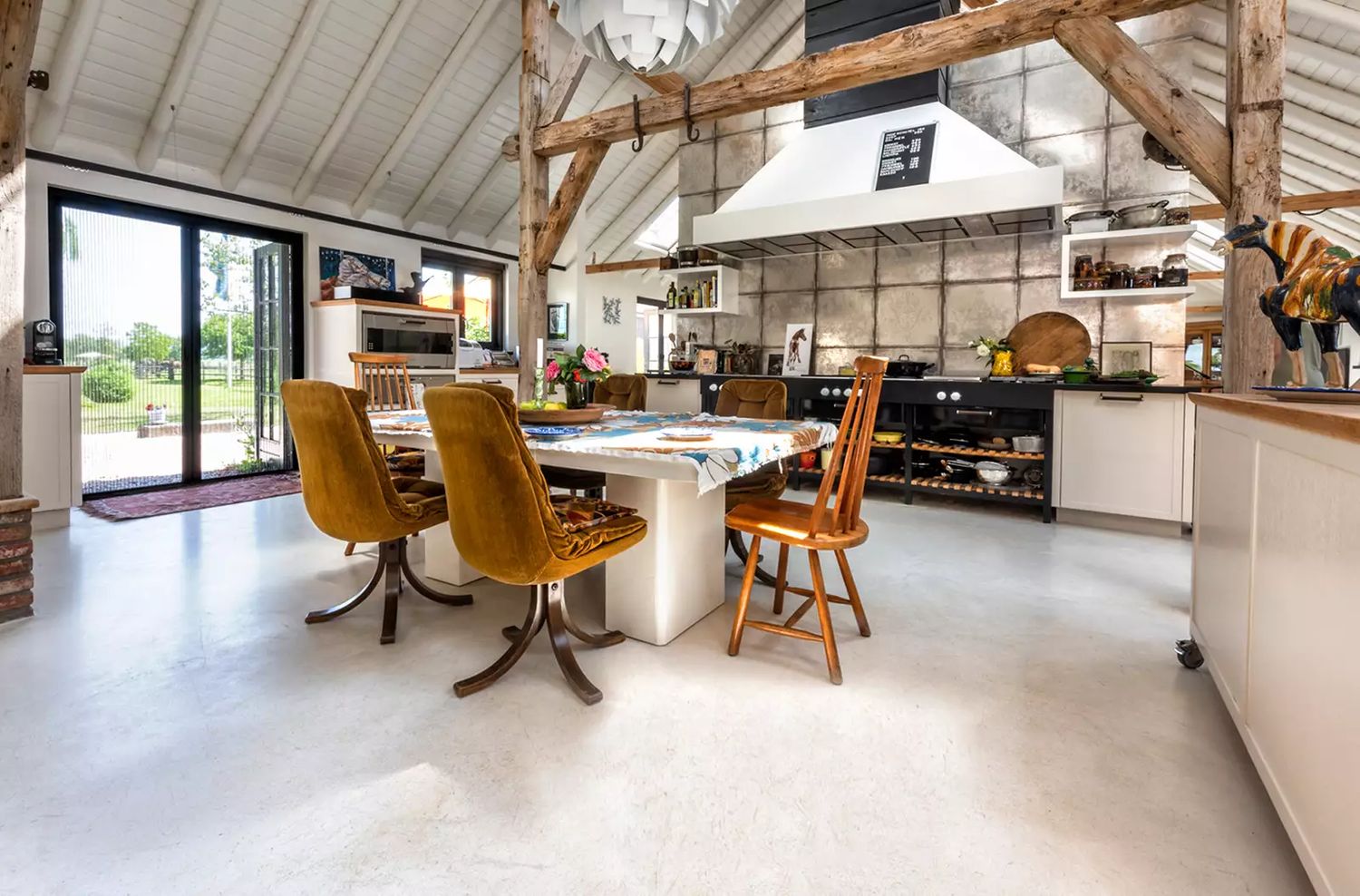 Het gaat niet over een enkele boerderij en de riante lap grond, ook betreft deze verkoop nog een studio en liefst vier bijgebouwen. Het totale terrein is met sloten omzoomd, heeft een eigen waterberging en op afstand bedienbare toegangspoorten. Soort Giethoorn, maar dan helemaal anders. Je hebt in totaal ruim 570 vierkante meter woonoppervlak om te doen en laten wat je wil.