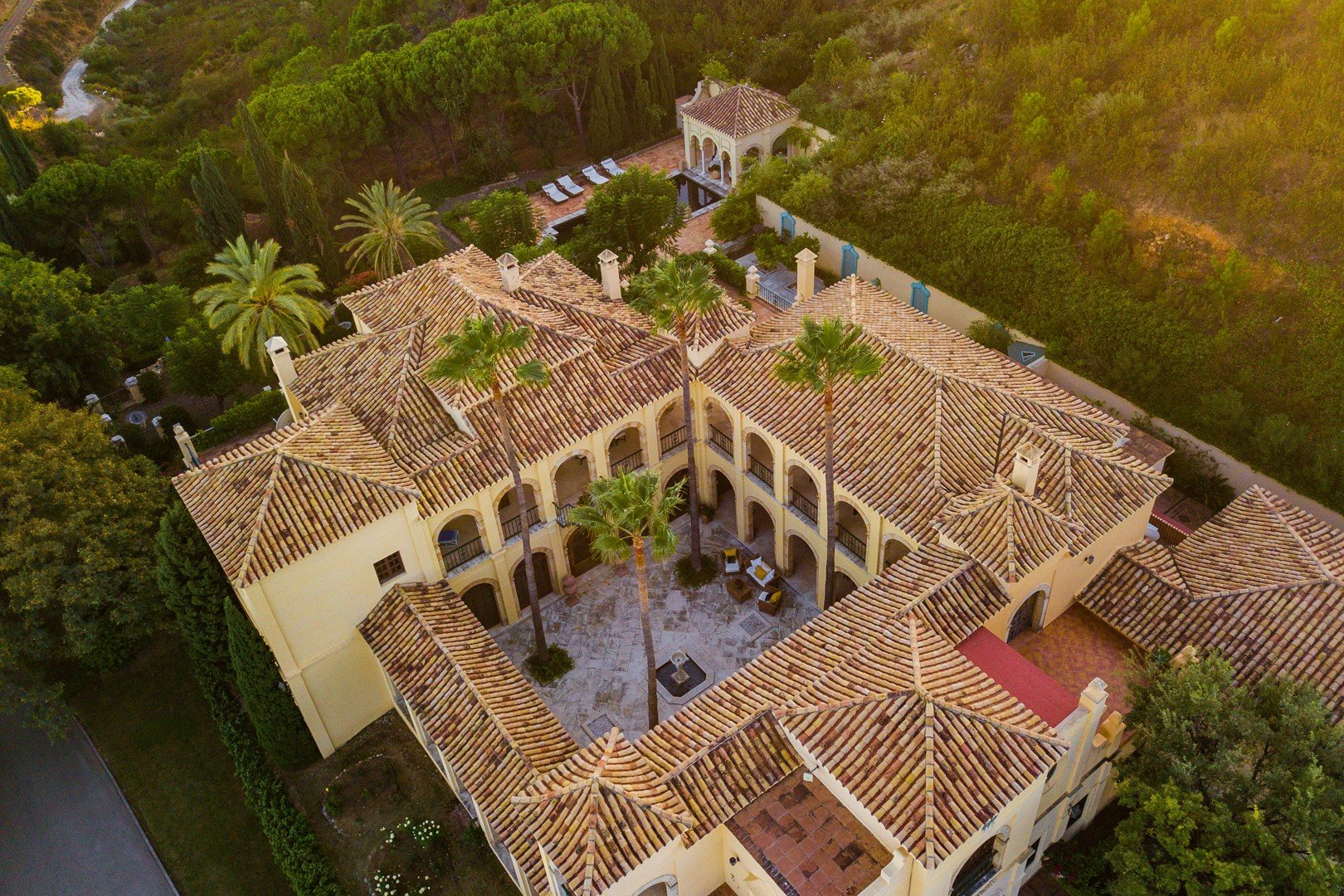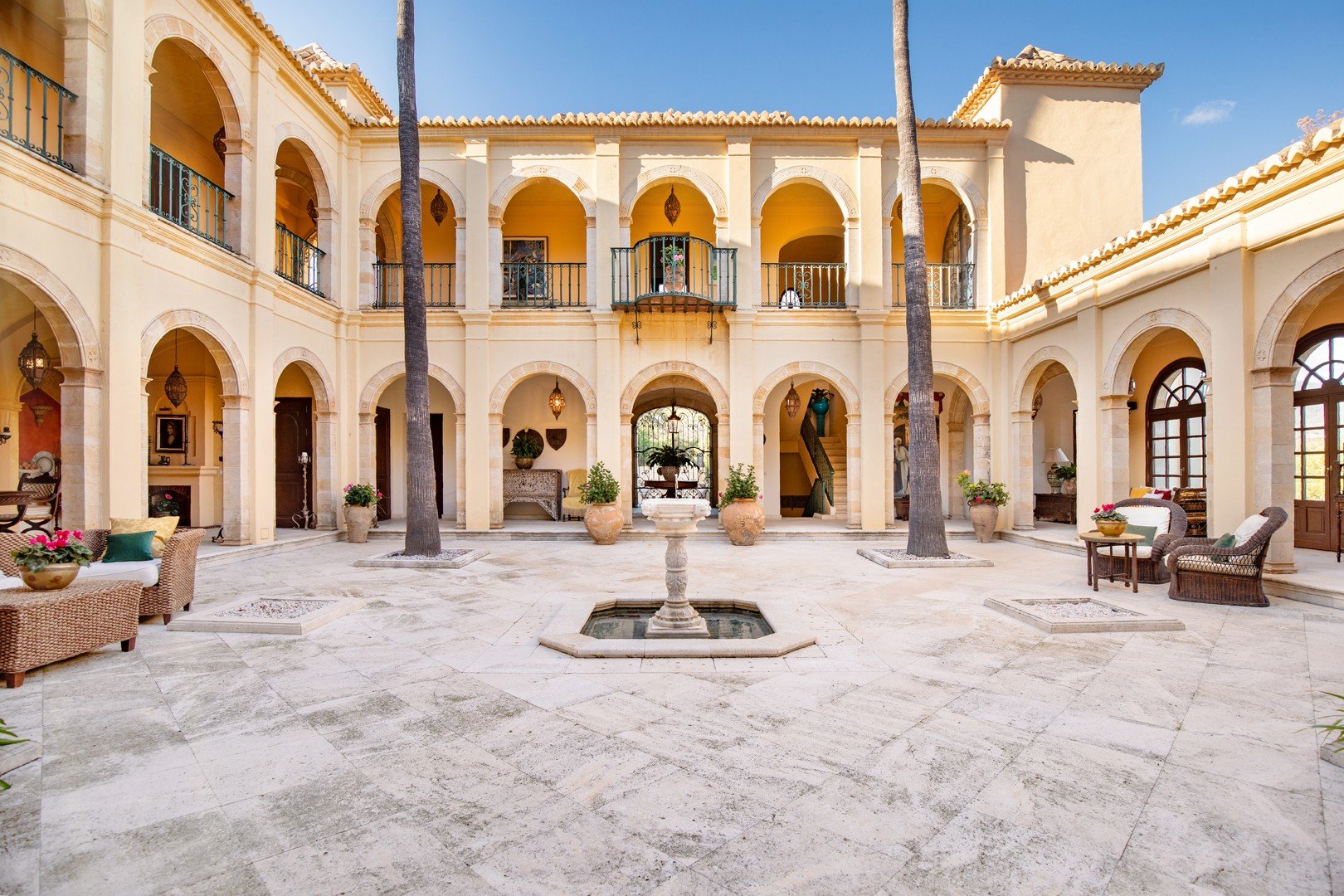 In Moors-Spaanse stijl met authentieke fonteinen en eeuwenoude tegels komt men via imposante glazen en smeedijzeren deuren aan bij een magnifieke binnenplaats geflankeerd door eenenvijftig uitgehouwen stenen en veelomvattende palmbomen. De idyllische geografische ligging waarborgt volledige privacy met prachtige uitzichten over de zee en bergen.