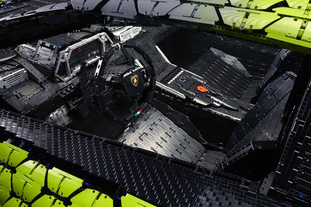 De carrosserie van het model gemaakt van onderling verbonden zeshoekige elementen. Ze zijn gemaakt van op maat gemaakte stof. De 1:1 Lego-replica is afgewerkt met een verfkwast-effect UV-kleurcoating, aangebracht door de specialisten van Lamborghini. Ook hebben ze de Lego-versie voorzien van verbluffende Y-vormige koplampen en een goed interieur met een ingewikkeld dashboard, uiteraard volledig uit lego opgetrokken.