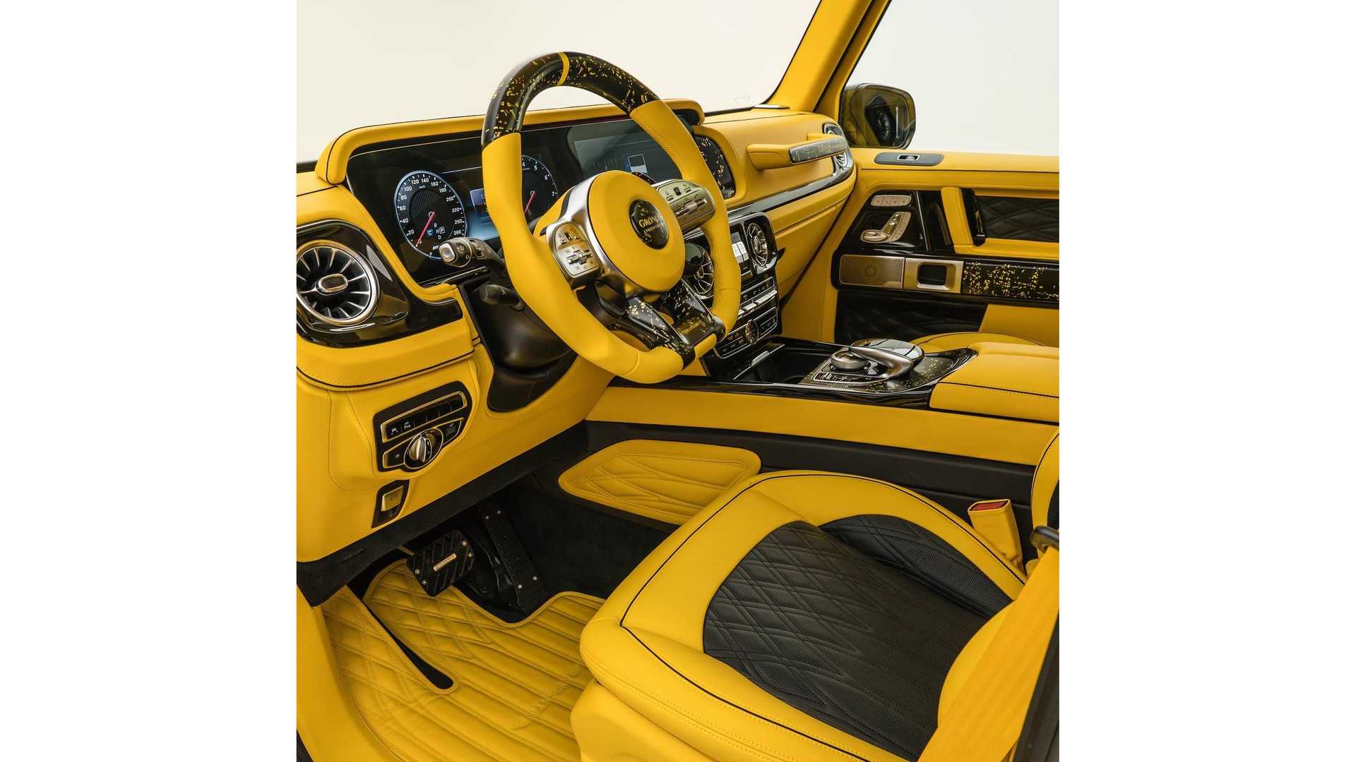 Het interieur is net zo flitsend als de carrosserie en zet het overwegend gele thema voort met zwarte accenten. Het is zeker veel om in je op te nemen, maar Mansory kent zijn klantenkring, aangezien de aftermarket-specialist dit soort oogverblindende tuningkits blijft uitbrengen. Naast de gele. kleuren, is leer overduidelijk het hoofdthema in dit gedeelte van het voertuig.