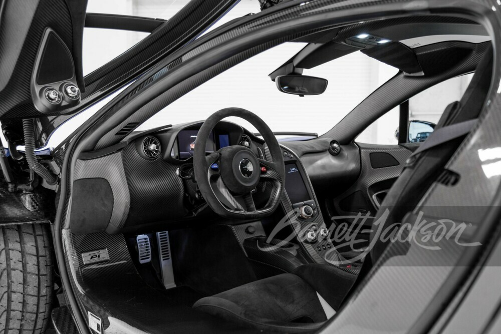 Met slechts 5113 kilometer op de teller, is deze 2015 McLaren P1 een uiterst zeldzaam exemplaar: een van de slechts 375 geproduceerde exemplaren. De P1 is gebouwd rond een monocoque-chassis van koolstofvezel, met een gewicht van iets minder dan 1395 kilogram pond. Het monocage-chassis uit één stuk van de P1 is voorzien van een subframe van ‘geëxtrudeerd aluminium’ aan de achterkant, carrosseriepanelen van koolstofvezel met een tweevlaksdeuren.