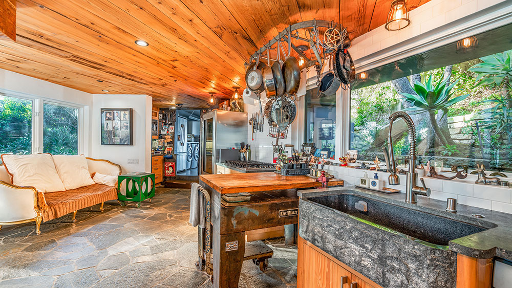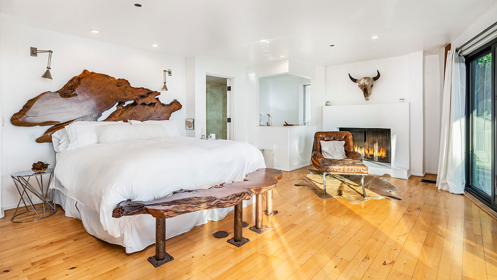 Er is een bar aan de ene kant, een overdekte ligweide en een zwembad en bubbelbad met trappen die naar een verborgen buitendouche leiden. Wie de foto’s goed heeft bestudeerd heeft opgemerkt dat er een Airstream-aanhanger, uit 1957, geparkeerd staat naast het zwembad. Te typeren als een rijdend koekblik, dat bij de koop is inbegrepen. Momenteel wordt het gebruikt als opslag van zwembadapparatuur, maar het kan gemakkelijk worden omgebouwd tot z’n conventionele bedoeling.