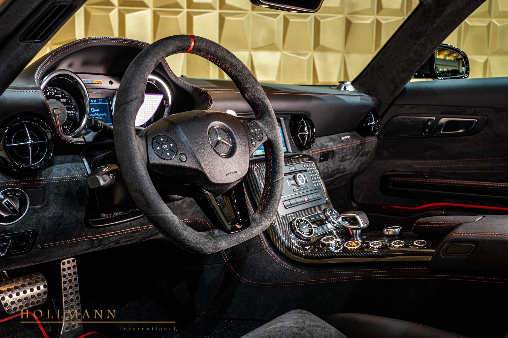 Is z’n totaliteit zijn er maar Black Series 350 exemplaren van geproduceerd. Het overgrote deel van deze oplage is verspreidt onder de sjeiks in het Verenigde Arabische Emiraten is vertrokken, dus je hebt voor Nederlandse begrippen een behoorlijk unieke wagen. Dit specifieke model is uitgevoerd in het Fire Opal Red, wat het een nog uniekere bolide maakt.