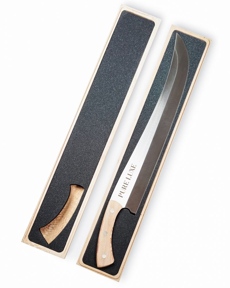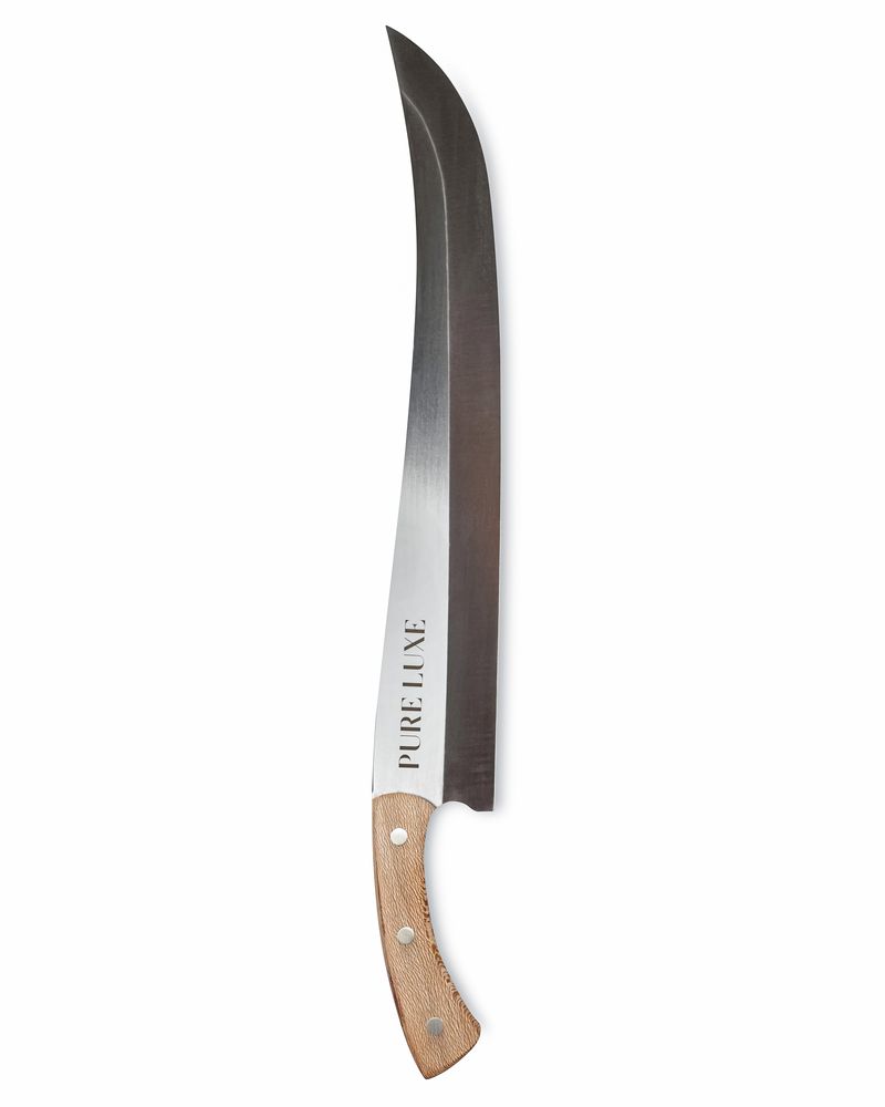 Wie ons YouTube-kanaal, socials en website actief volgt, weet hoe sporadisch we champagne openen middels een sabreersabel. Ondertussen durven we te zeggen dat we er zeer bekwaam in zijn geworden en het doet ons goed om te zien dat onze volgers massaal beeldmateriaal doorsturen van hun sabrages, de ene uiteraard eminenter dan de ander. Met trots presenteren we jullie hier ons eigen Pure Luxe-sabreermes.