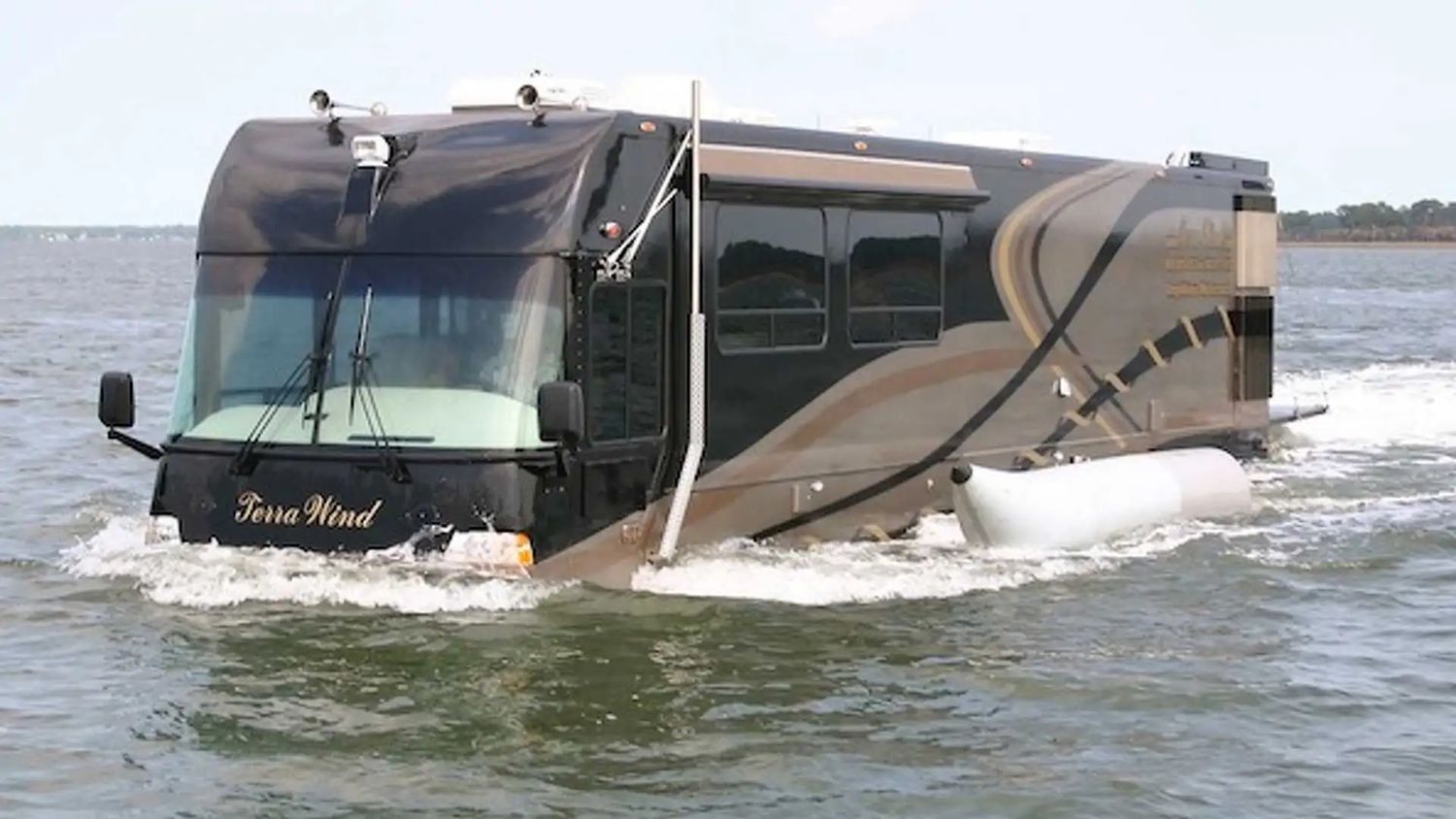 Zowel luxe campers als jachten zijn speeltjes van de rijken. Maar wat als je deze twee kunt samenvoegen tot een geheel? Het is misschien esthetisch minder aantrekkelijk, maar je steelt wel de show. Om nog maar te zijgen over het praktische aspect. De Terra Wind Amfibische Motorhome is het perfecte recreatievoertuig voor een geweldige vakantie, die het idee van een luxe camper en een jacht/botenhuis combineert.