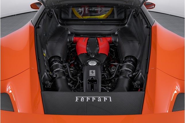 De F8 Tributo rolt rond met dezelfde motor als die in de 488 Pista, een 3,9-liter twin-turbo V8-motor levert een vermogen van 720 pk en 770 Nm koppel. Het hele apparaat zit vol met carbon fiber waardoor het lichtgewicht nóg wat sneller gaat.