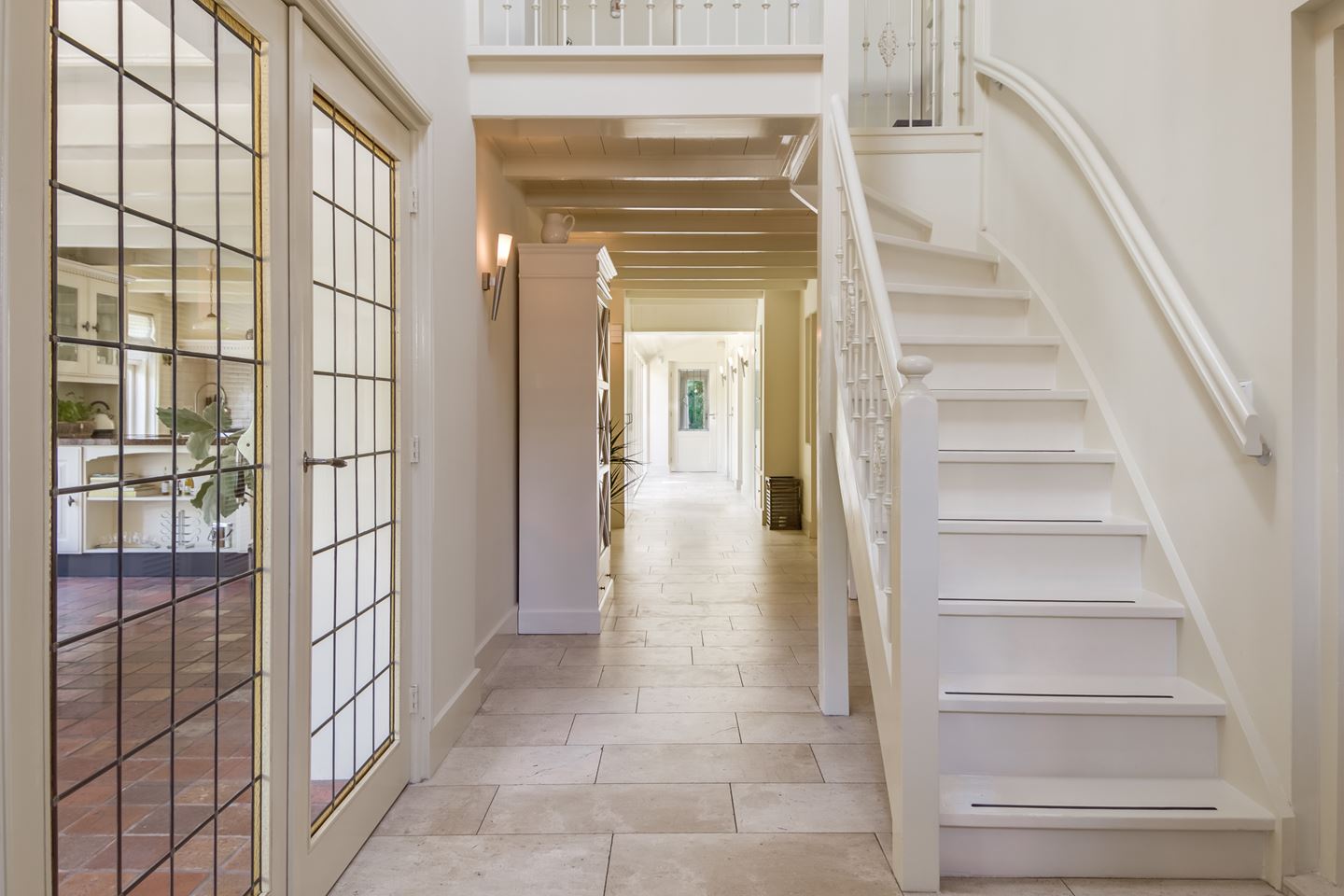 “De in opdracht van eigenaresse gerealiseerde uitbreiding met prachtig souterrain biedt de mogelijkheid om wonen en werken op een fraaie en luxe manier te combineren,” aldus de makelaar van dienst. Onder het zadeldak bedekt met pannen liggen 7 kamers, waarvan 5 slaap- en 2 badkamers, voorzien van inloopdouche, ligbad en dubbel wastafelmeubel.