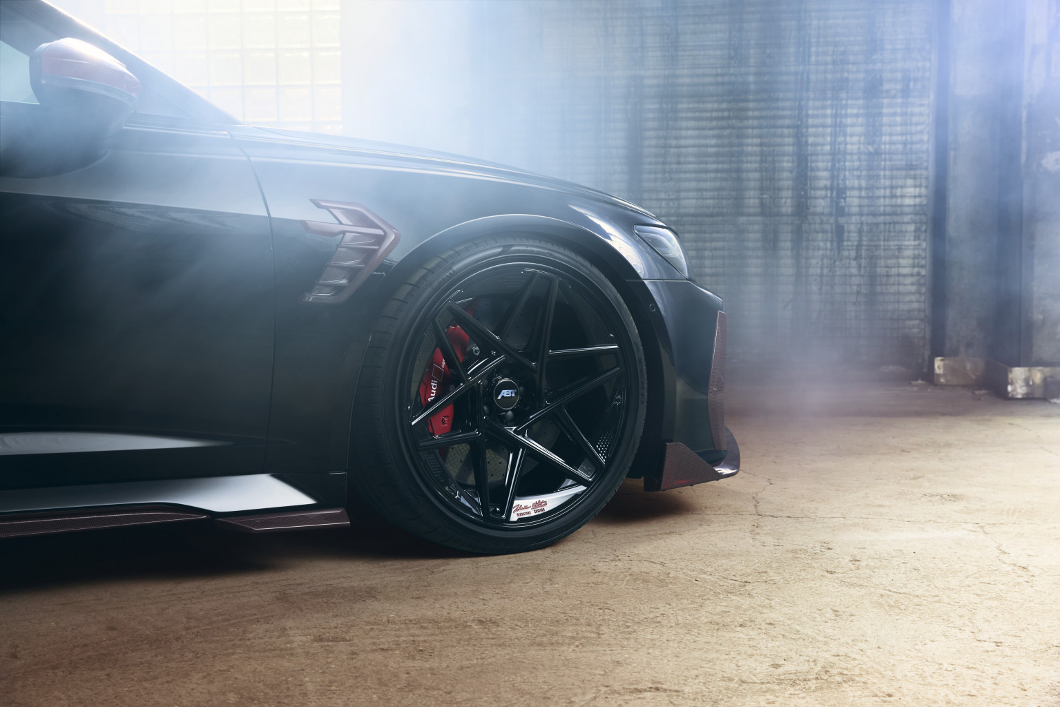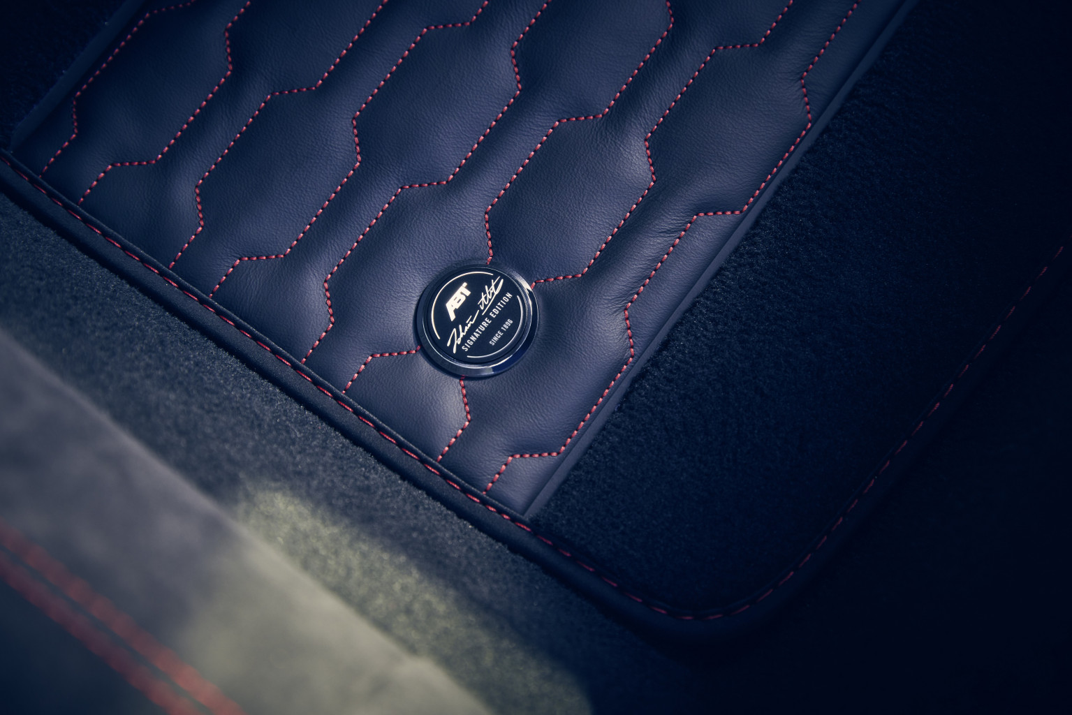 ABT geeft het interieur en exterieur verder nog veel koolstofvezel in het rood (ABT Rood Carbon Aerodynamica exterieurpakket), terwijl de lak in het Mythoszwart metallic is, en diverse signaturen om aan te tonen dat het om een speciale editie gaat, voor als je het nog niet door had. De corrosie rust op 22 Inch Forged wielen (gloss black) met freely rotating hub covers in samengang met rode remklauwen.