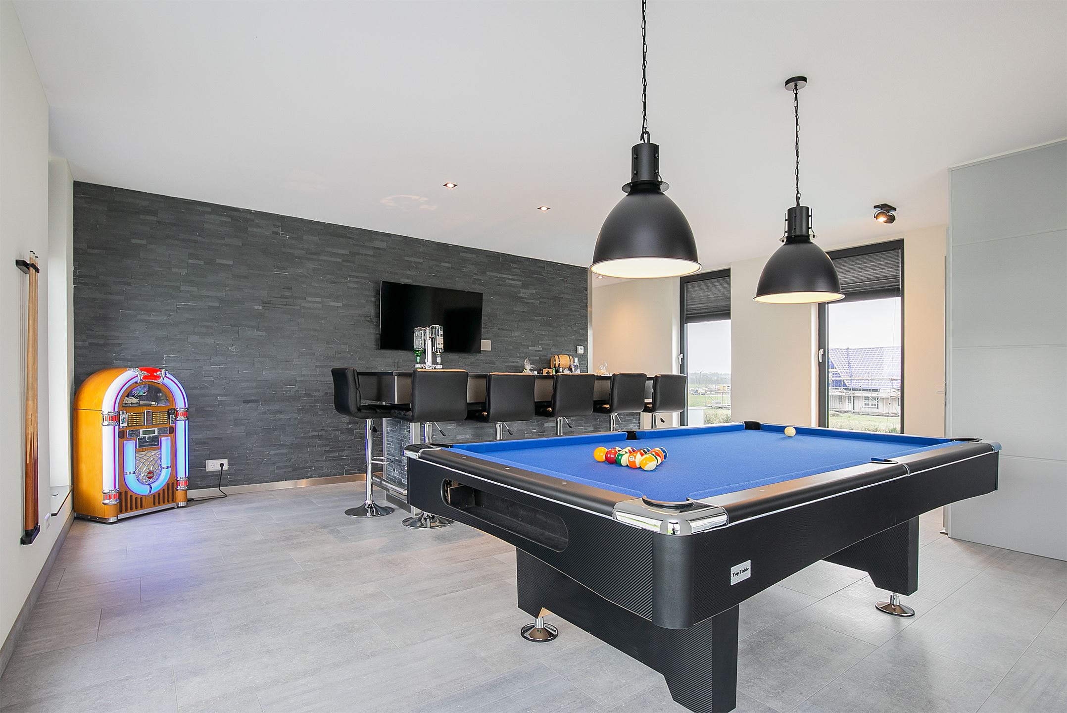Op de tweede en tevens laatste verdieping kom je via de overloop uit op nog twee andere slaapkamers met een gedeelde badkamer. De overloop leidt ook naar de recreatieruimte, pooltafel een bar en een klein balkon, en er is zelf een lift.