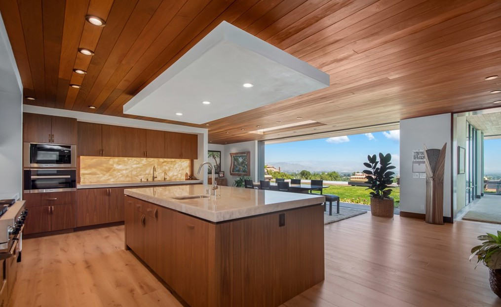 In 1980 werd deze residentie uit de grond gestampt om in 2018 een grondige renovatie te ondergaan, toen het voor $ 6 miljoen werd verkocht aan vastgoedontwikkelaar Russell Geyser. Het beslaat 836 vierkante meter aan leefruimte, bestaande uit een hoofdgebouw en een vrijstaand gastenverblijf die te typeren zijn aan de ‘Hawaïaanse stijl. Het is gelegen aan het einde van een doodlopende weg, bovenop een heuvel en op 0.8 hectare heuvelland. In de woning kamer is een glazen open haard, net als in de tuin, in samengang met uitzichten over de San Fernando-vallei.