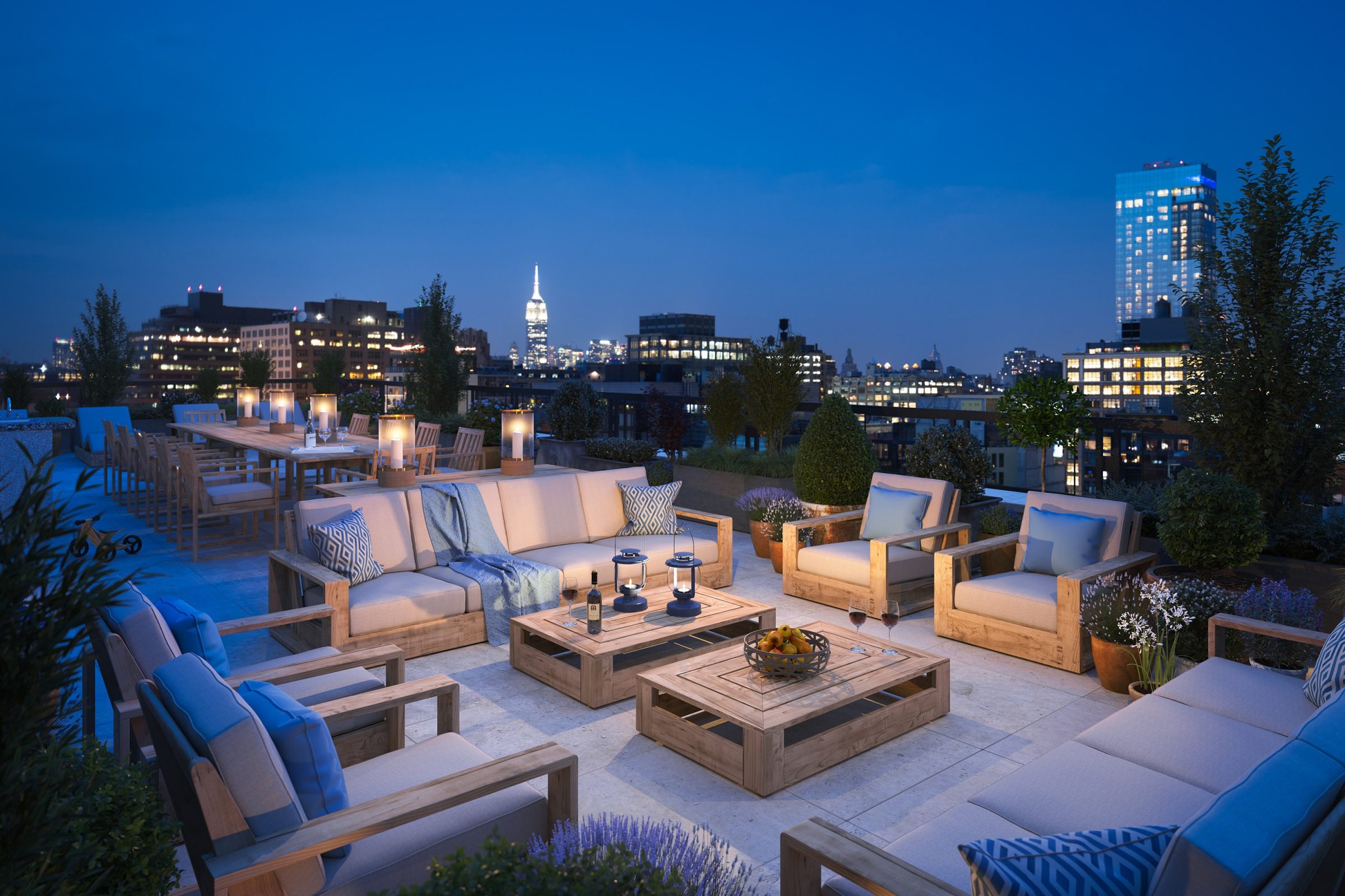 We hebben het al even kort over het dakterras gehad, maar het is buiten een mooi uitzicht ook de perfecte plek om je Grand Prix overwinning te vieren met wat vrienden en familie. Er is een grote dinertafel en een lounge gedeelte waar je in alle gezelligheid wat drankjes kan nuttigen.