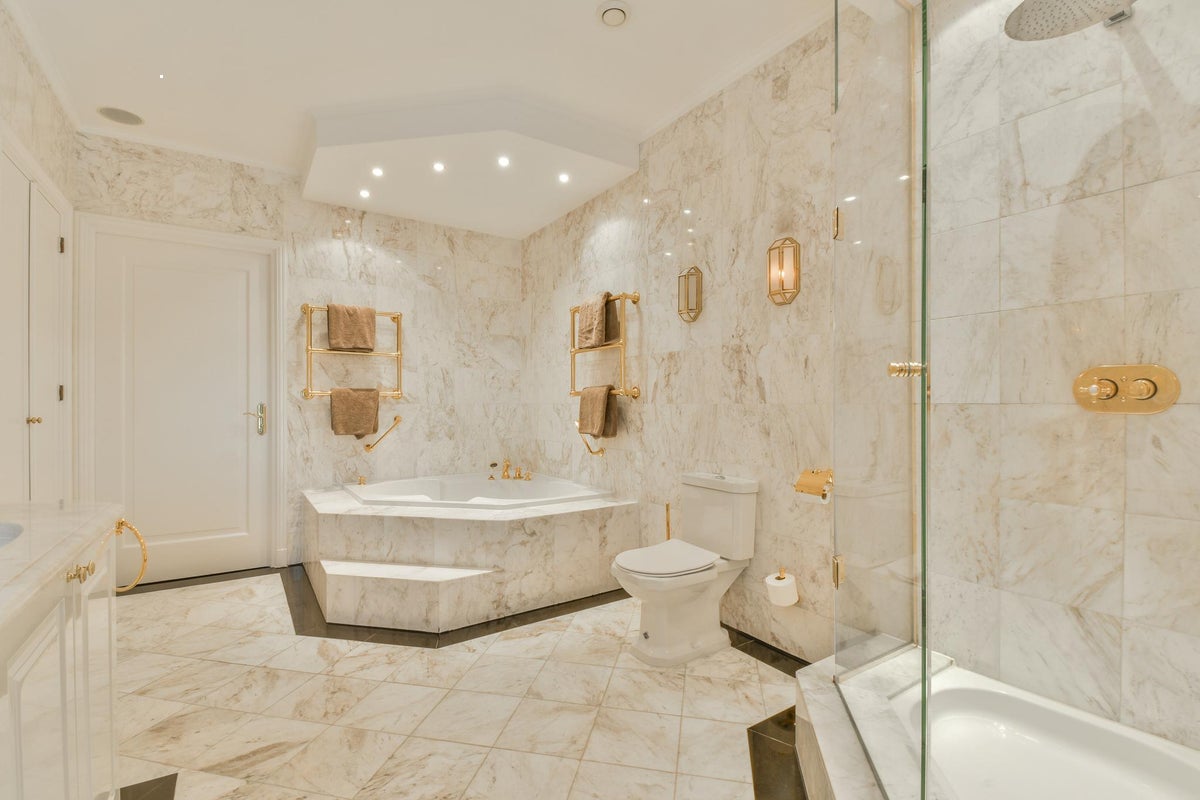 De tweede en derde slaapkamer zijn gelegen aan de voorzijde van het complex en zijn net als achter de deuren van dit woonpaleis royaal qua oppervlakte. De slaapkamer aan de rechterzijde beschikt over een eigen balkon, terwijl de tweede badkamer is uitgerust met een ligbad/douche combinatie (te zien op de foto hierboven).