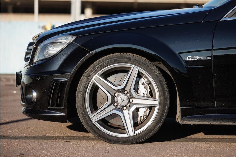Deze Mercedes-Benz C63 AMG rolt over het wegdek met een 6,2 liter V8-motor onder de kap. De auto bleef tot eind juli 2010 ter beschikking van Michael Schumacher en de toentertijd luxueuze station werd voorzien van een aantal extra opties, die meer dan € 20.000 aan de catalogusprijs hebben toegevoegd.