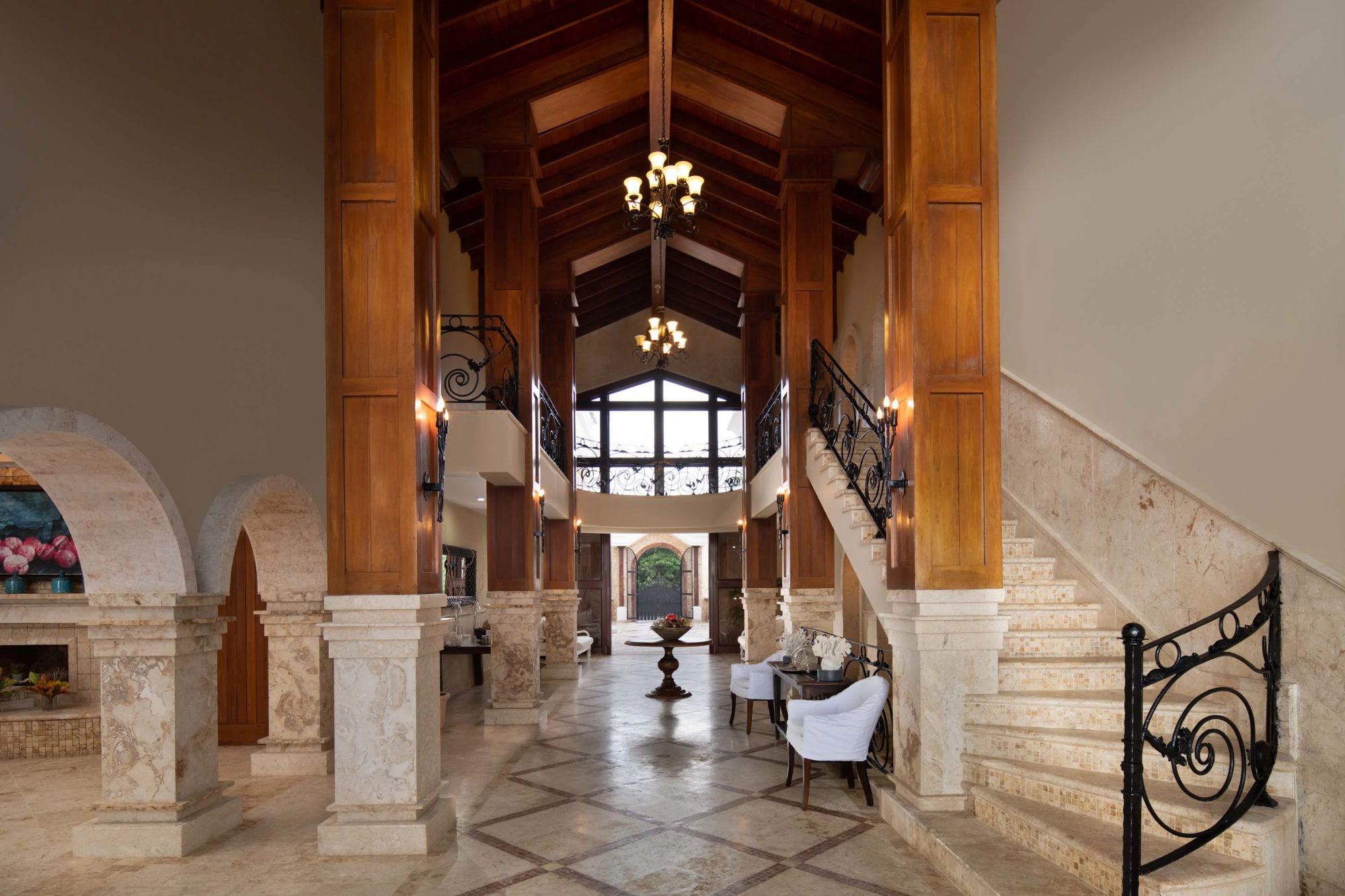 Het drie verdiepingen tellende villa is gebouwd in een Spaanse koloniale stijl, bevat acht primaire suites en twee junior suites om comfortabel plaats te bieden aan maximaal 24 overnachtende gasten.