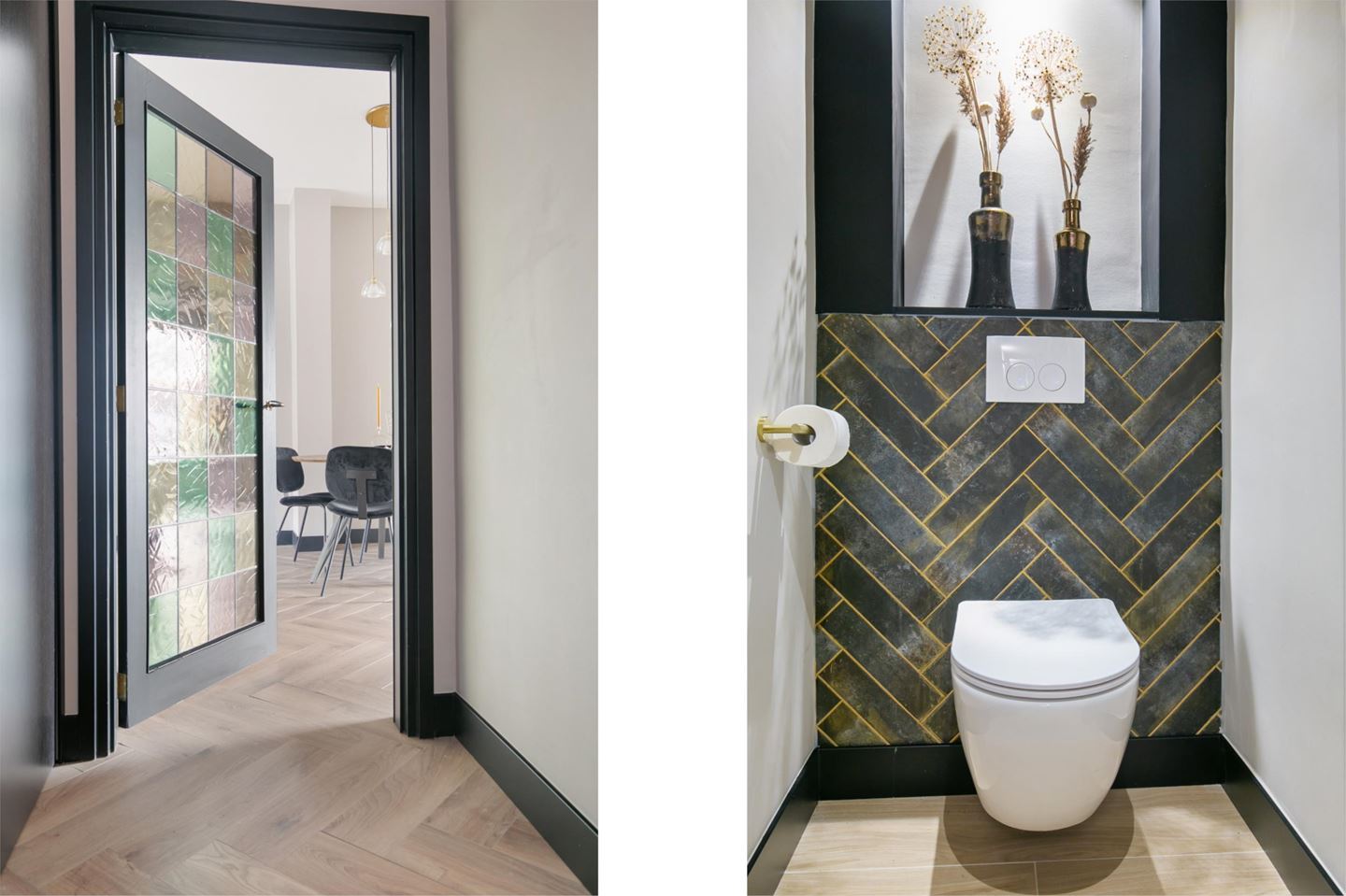 De badkamer, die ongetwijfeld de meest opmerkelijke metamorfose doorgaan, ging van een ranzige, vochtige bouwput naar een vernieuwde ruimte met een moderne uitstraling. De smerige tegeltjes en de alledaagse wastafel hebben plaats gemaakt voor een dubbele wastafel, een zwarte douchecabine en een toilet.