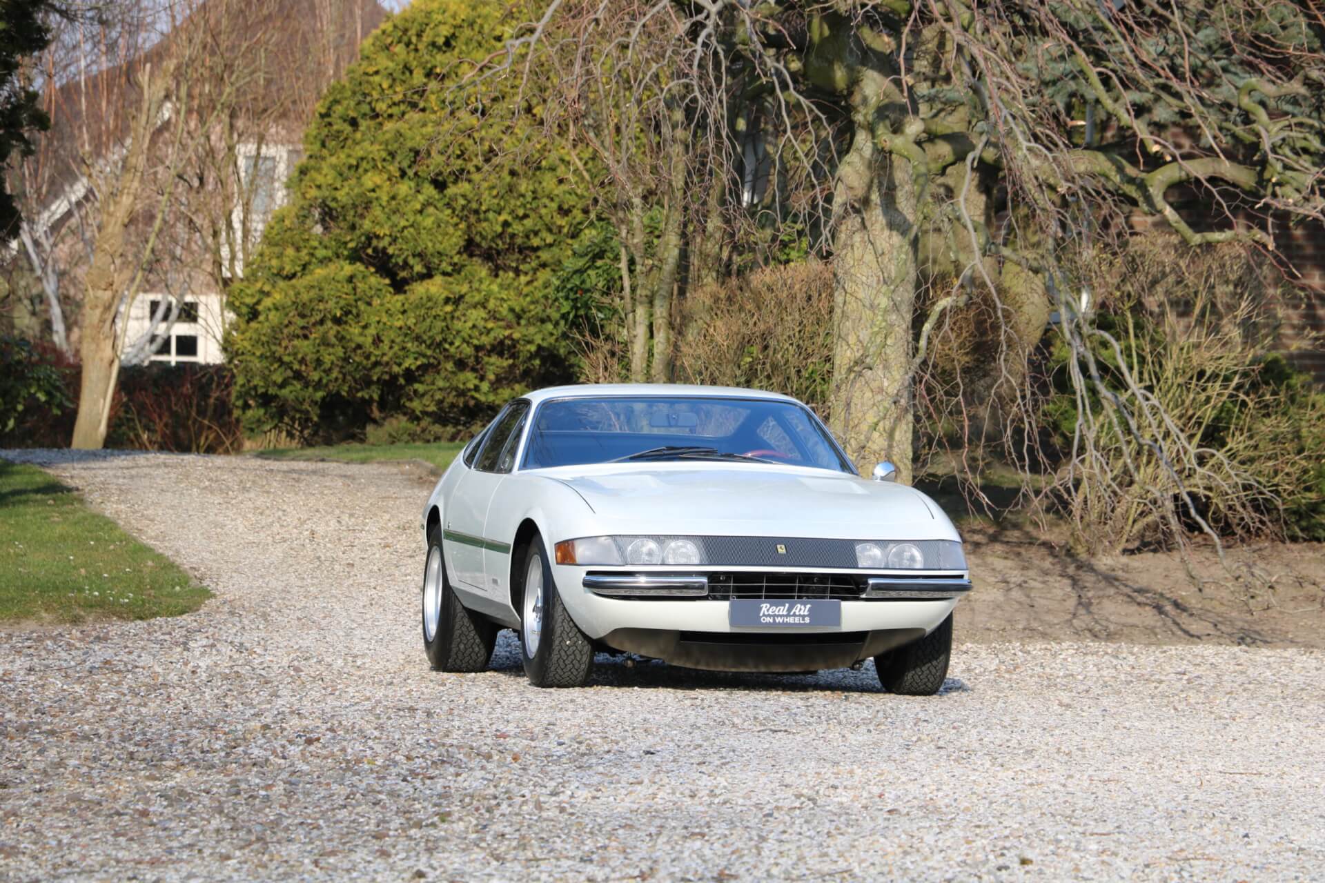 Er wordt aangenomen dat slechts 39 Daytona’s oorspronkelijk werden geverfd in Bianco Polo 20-W152 en slechts twee ervan hebben volgens de aanbieder het interieur in het groene Verde VM 103. Groen is overigens ook te zien op het exterieur in de vorm van een groene streep aan de zijkant van de Ferrari.
