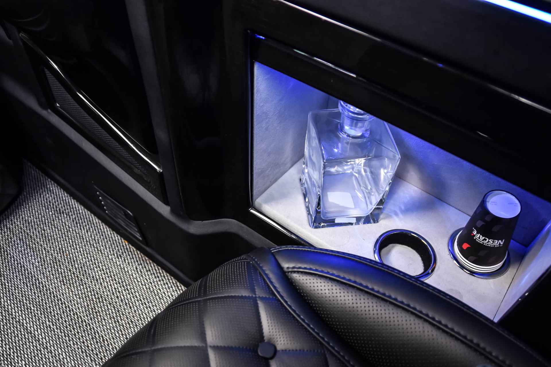 Dankzij ingebouwde wi-fi, bluetooth Apple-tv kunt u op het uitklapbare tv-scherm naar uw favoriete show kijken of een potje FIFA spelen op de meegeleverde Playstation, terwijl de controller deels verlicht wordt door de alcantara hemelbekleding á la Rolls-Royce.