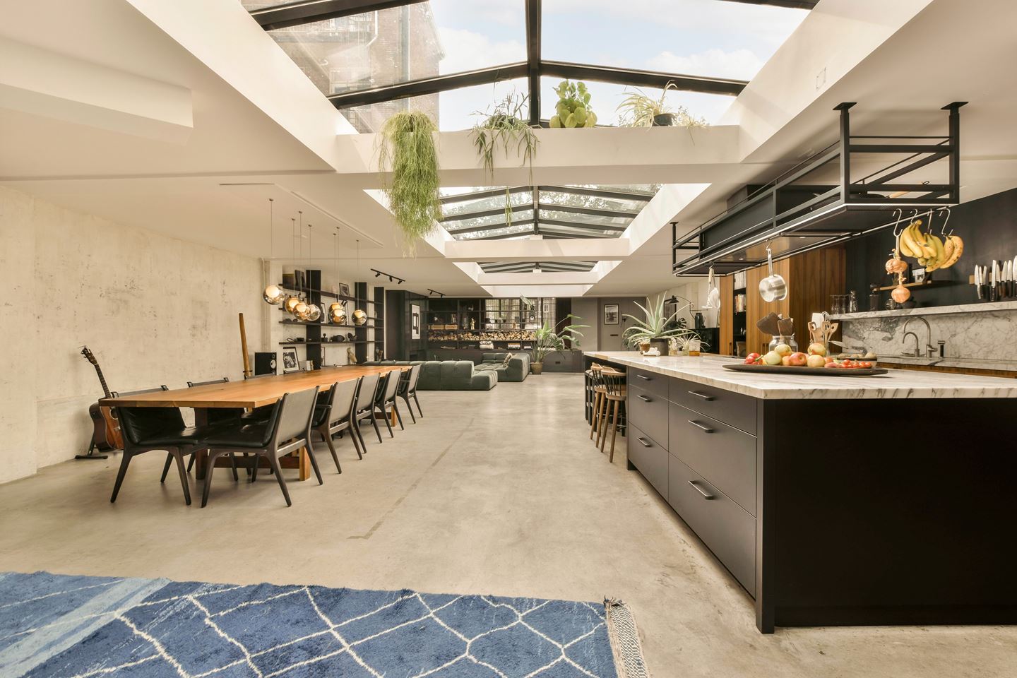 Aan de rand van het Vondelpark is uiteraard een locatie waar velen van dromen. Het enige wat niet echt bijdraagt aan de luxueuze uitstraling, is de achtergelegen portiekflat, vanwaar bewoners uitkijken op het dakterras van circa 38m² en zelf naar binnen kunnen gluren wanneer de lichtstraat niet bedekt is. Maar dat mag de pret niet drukken.