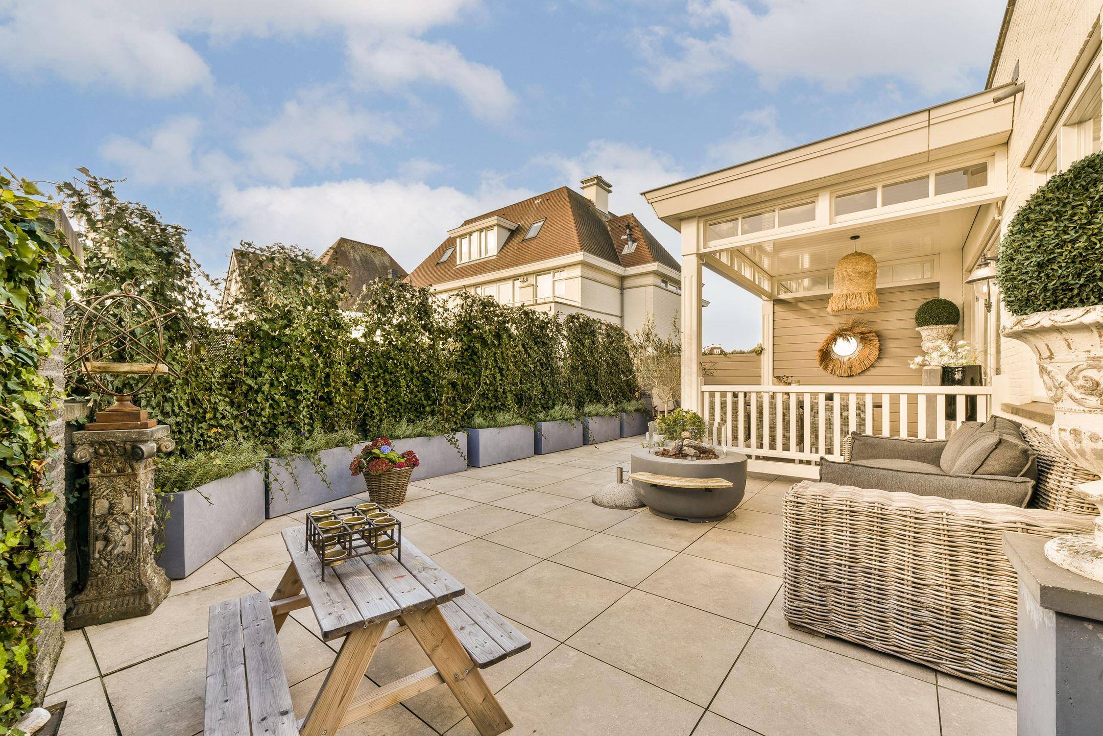 Op de begane grond heeft het huis een L-vormige woon- en eetkamer met een open haard. De stenen vloer is voorzien van vloerverwarming en openslaande deuren leiden naar de op het zuidwesten gelegen tuin van 45 m² met veranda. Met “zeer veel privacy”, iets wat de Meilandjes hoog in het vaandel hebben staan. “De veranda geeft een gezellige sfeer aan de tuin en met de aanwezige gasaansluitingen voor bbq of gasheater is het hier altijd comfortabel vertoeven”, schrijft de makelaar.
