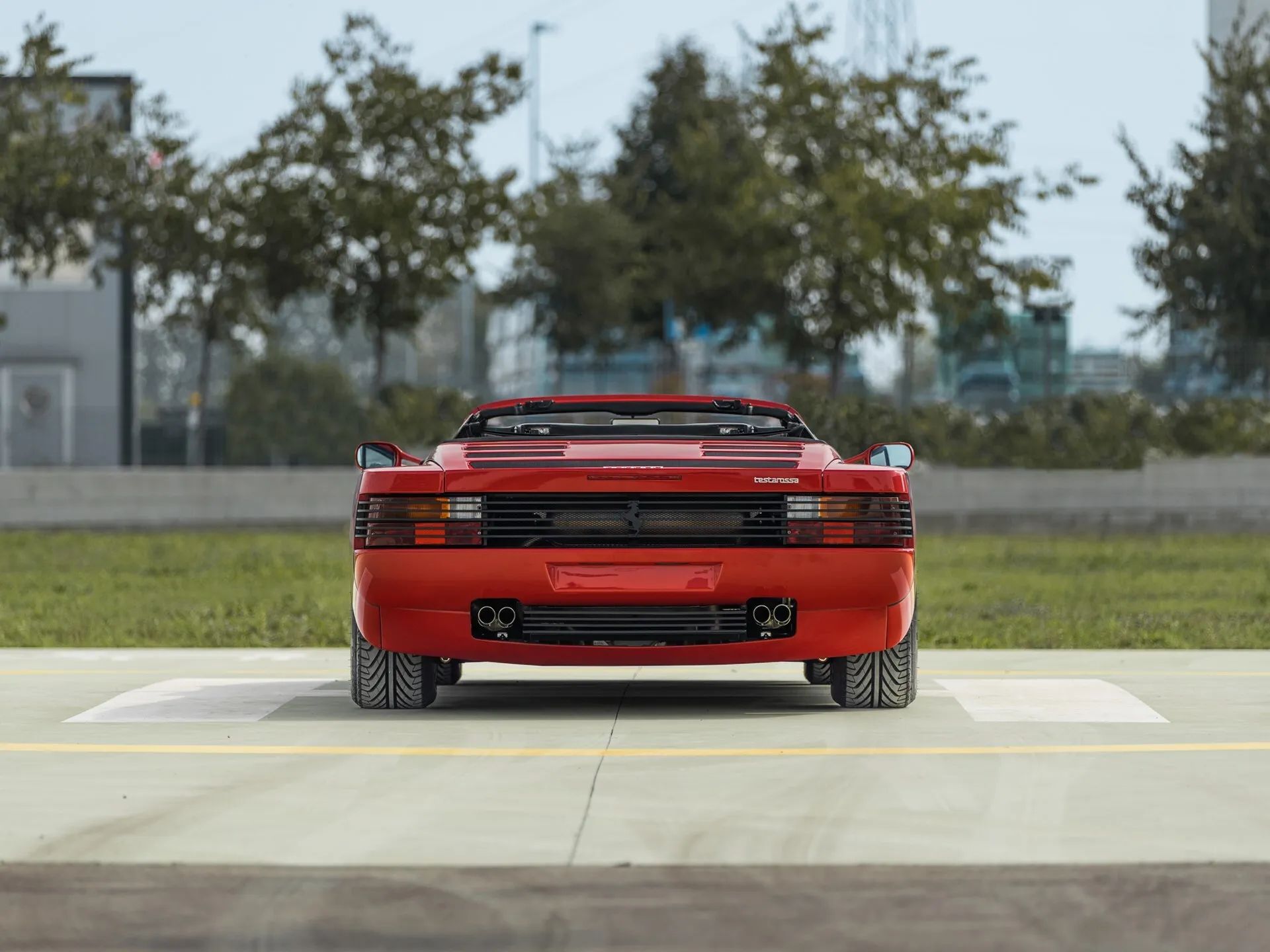 De Testarossa, met chassisnummer EFG092, draagt de klassieke rode Ferrari-kleur. De wagen ziet er door de bewerkingen van Pininfarina ongelooflijk natuurlijk uit. Het dak is een zwarte soft-top die zowel dicht als open kan.