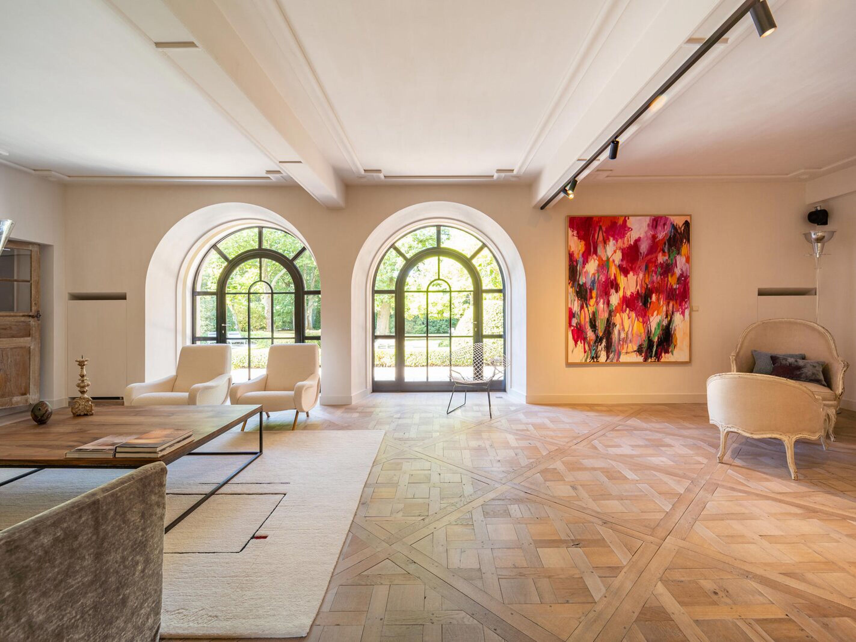 De groene omgeving zet de toon en het ontwerp van de woning van 700 m² maakt het plaatje compleet. “Deze prachtige woning combineert charme uit de oude tijd met een hoogwaardige afwerking”, schrijft de makelaar van Brussel’s Sotheby’s International Realty.
