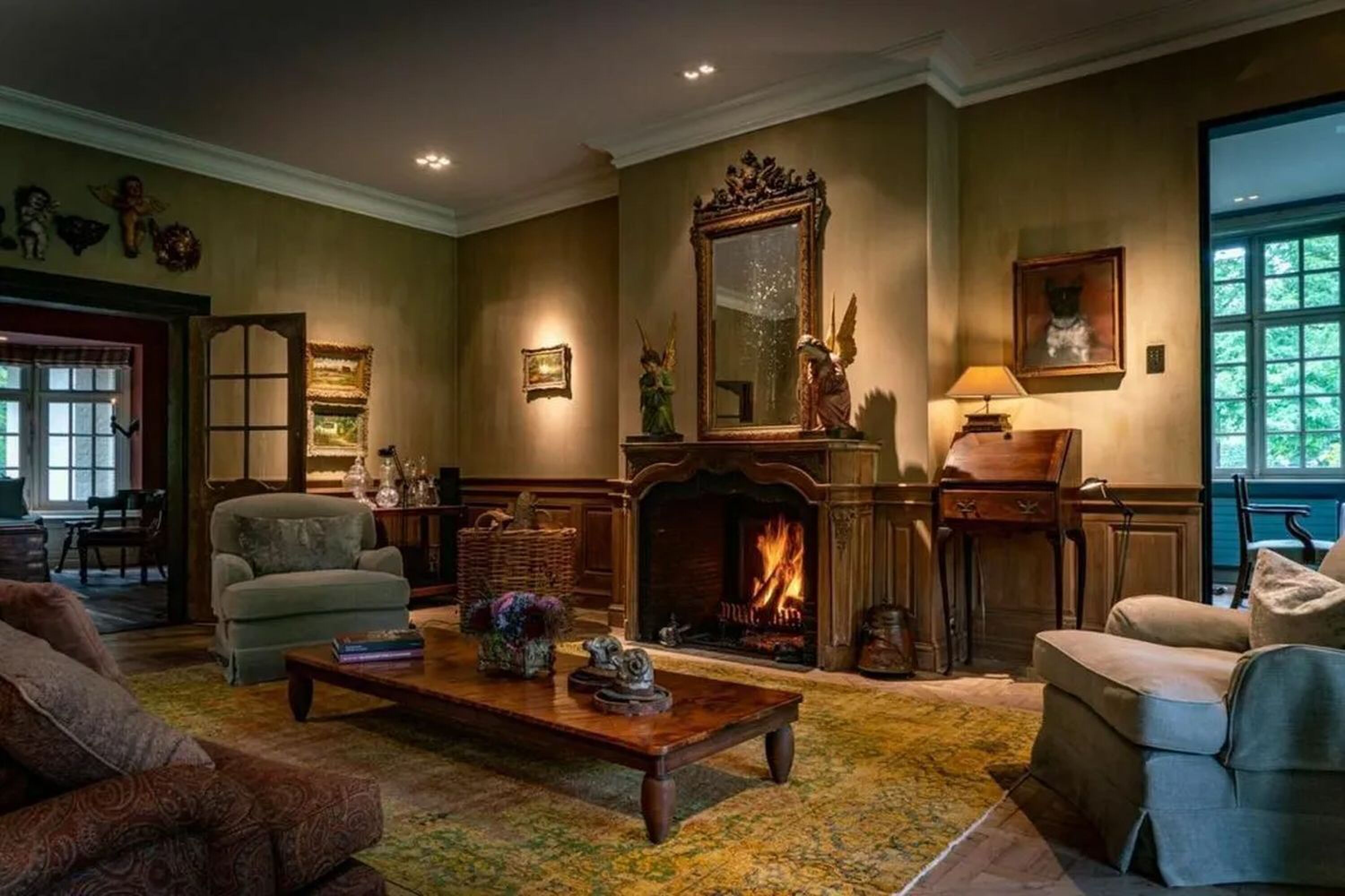 Het 9e-eeuws pand bevat een klassiek interieur met open haard, houten details, sierlijke schilderijen en tapijten. Ook zien we op de foto’s meerdere kroonluchters, een klassieke keuken met serre, een kantoorruimte en een buitenkeuken met lange tafel.