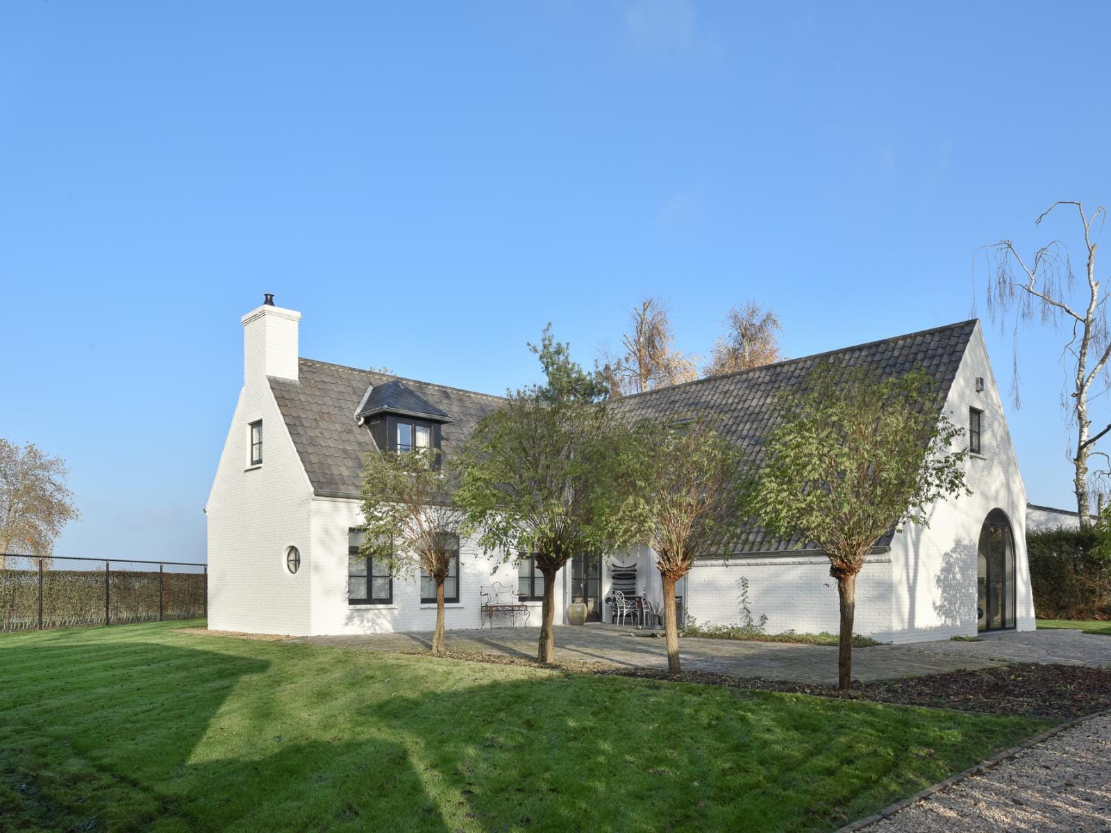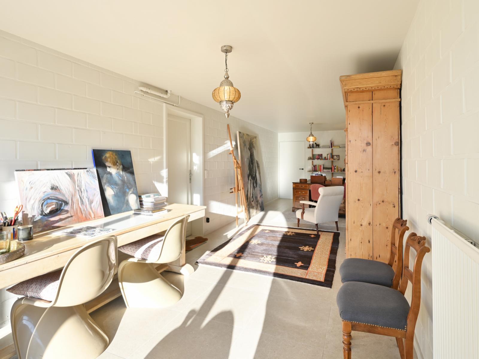 Het vrijstaande landhuis in Damme, onder de rook van het welvarende Knokke, heeft een statige uitstraling en is opgetrokken uit hoogwaardige materialen en afwerkingen. De ruime woonkamer heeft naast grote ramen die uitkijken op de prachtige tuin houten balken die uit het plafond steken. Elementen die bijdragen aan een warme en gezellige sfeer. Dat terwijl de keuken is uitgerust met moderne apparatuur. Ideaal voor het bereiden van heerlijke maaltijden voor familie en vrienden.