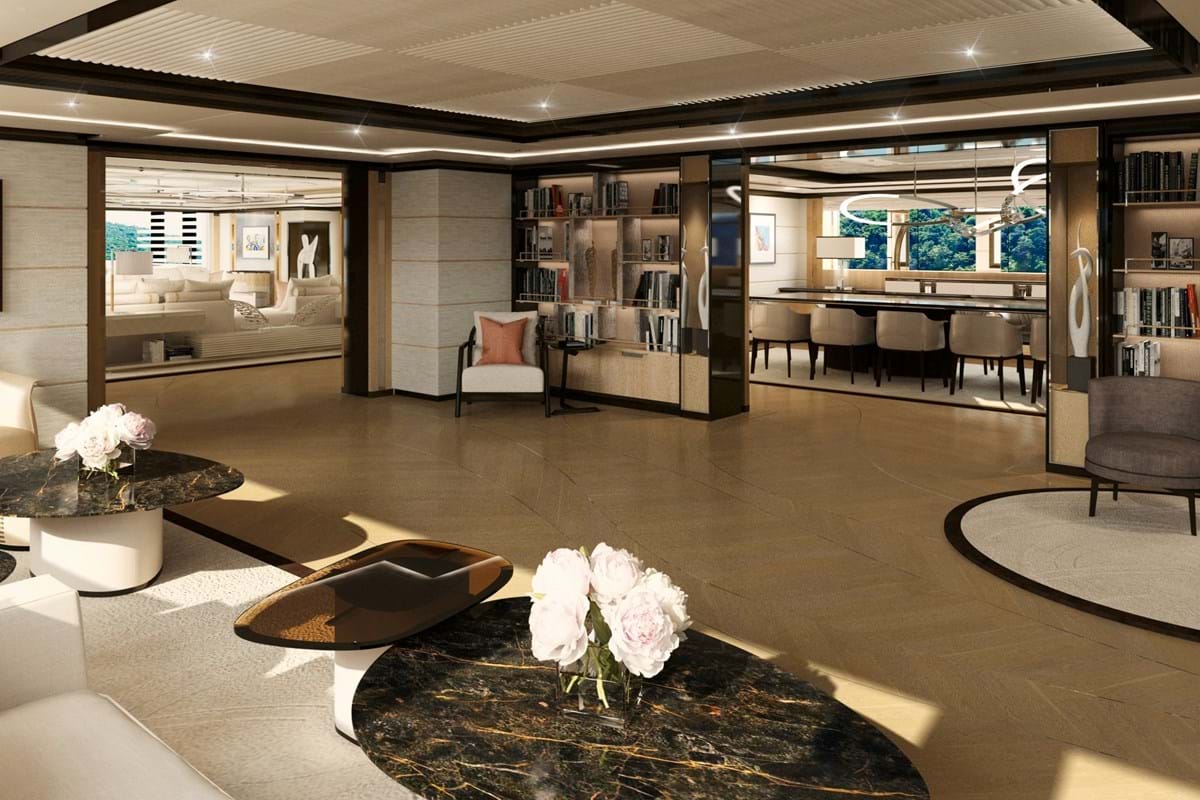 Het 88 meter lange project dobbert pas net op de oceaan en leent zich als dé kans om te flaneren op een ongebruikt en smetteloos superjacht